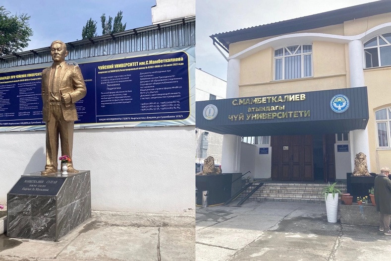 - 1994-жылы билим берүү мекемесин куруу үчүн маркум Султан Мамбеткалиевдин атынан иш алып барган Республикалык жогорку коллежге, азыркы Чүй университетине, Бишкектеги Сүйүмбаев-Осмонкул көчөсүндө жайгашкан 1,10 гектар жер тилкеси берилген. Мамбеткалиев каза болгондон кийин аталган университетти иш жүзүндө анын кызы Чолпон Мамбеткалиева жетектеп келет. Бирок 30 жылдан ашык убакыт бою ректорат билим берүү системасын кеңейтүүнүн жана өнүктүрүүнүн ордуна, жогоруда айтылган 1,10 гектар жер тилкесин өз алдынча жер тилкелерине бөлүп, аларды максаттуу багытын өзгөртүү менен үчүнчү жактарга саткан.
