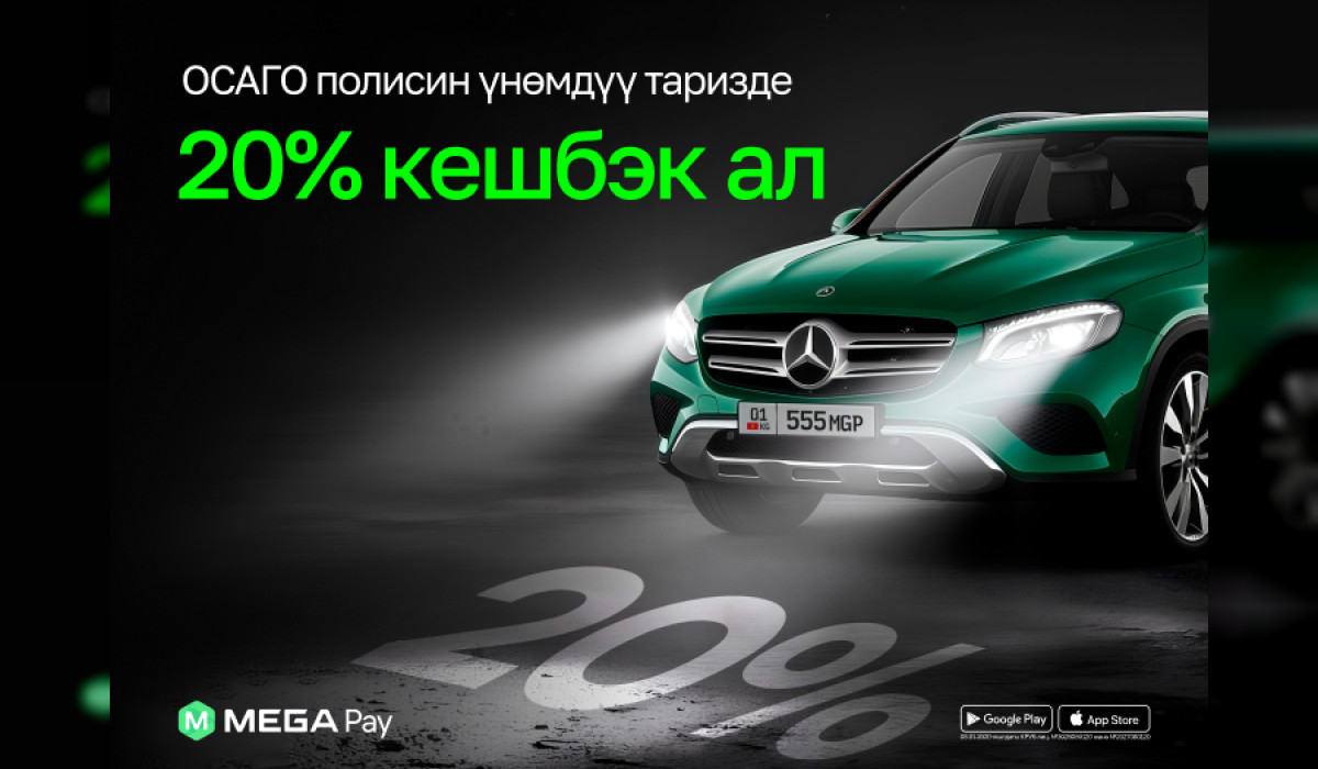 ОСАГО полисин MegaPay колдонмосу аркылуу бир нече мүнөттүн ичинде онлайн тариздеп, 20% кешбэк алыңыз!