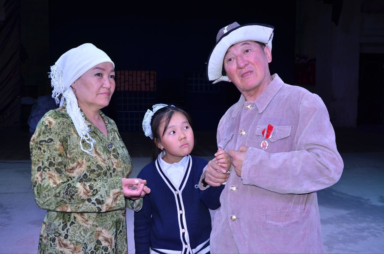 – 1981-жылы окууну бүттүм. Иштейин десем эч жерде орун жок, Нарын театрына “сцена монтировщиги” болуп жумушка кирдим. Карасам, атактуулар Эсенбек Маданбеков, Капар Медетбеков, Бакирдин Алиев, Сейитказы Андабеков, Күмөндөр Абылов жана башкалар жүрөт. Аларды көрүп оозум ачылып калды. Бир күнү “Көк бет” комедиясын коёрдо бир артист келбей калды. Гитара, аккордеон, пианинодо ойногонумду, ишке зирек экендигимди байкаган залкарлар режиссёр Алмаз Зарлыкбековго “ушуну артист кылып бизге кош” дешти. Ал макул болду. Мени тиги келбей калган артисттин ордуна бекитти. Колхоздун активдеринин ролунда Капар Медетбеков, Сейитказы Андабеков, Бакирдин Алиев. Мен бригадирдин ролундамын, кызматым – тигилерге чай берүү, сүйлөп көңүлдөрүн алуу. Сахнада ойноп жатабыз. Калдаңдап жатып чыныны сындырап алдым. Оюма кыргыздын бир ырым-жырымы тык эте калды. Сынган чыныны алып үчөөнүн башынан айлантып, түкүртүп, анан өзүмдүн башымдан айлантып түкүрүп туруп “жамандыктын баары ушу менен кетсин. Ишибиз алга жылсын” деп туруп ыргытып жибердим. Бул эпизод комедияда жок болчу. Ролумду жакшы ойнодумбу, айтор, ошондон кийин “Советтик Кыргызстан” гезитине макталып чыктым.