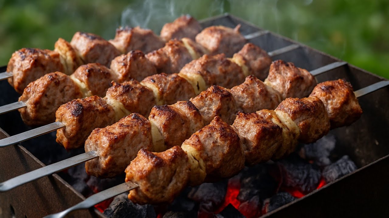 Даярдоо ыкмасы: пиязды блендерден өткөрүү керек. Эттин үстүнө минералдык сууну, артынан пияз жана кара мурч кошуп аралаштыруу керек. 2 сааттан кийин суусун төгүп, өсүмдүк майын жана тузду кошуп аралаштырабыз. Жарым сааттан кийин шишкебекти бышыра берсеңиз болот.