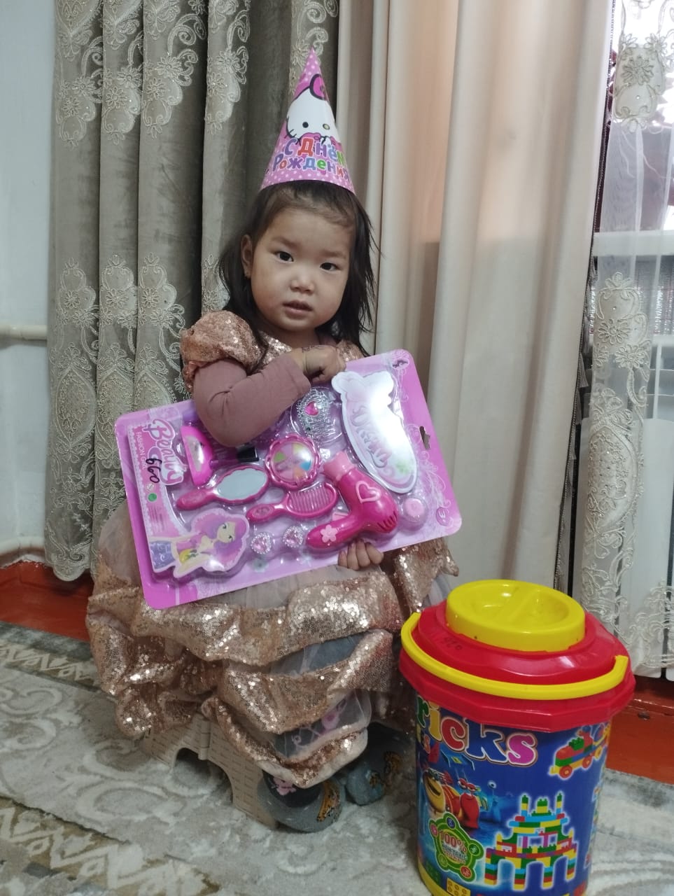 – Келсем Майрамбек деген уулумдун 2020-жылы 3-январда туулган Салия деген кызы катуу оорудан абдан алсырап калыптыр. Ал уулум үй-бүлөсү менен Балыкчыда турат. Салия үй-бүлөсүндөгү үчүнчү бала. Диагнозу – 4-стадиядагы нейробластома (залалдуу шишик). Салия 2023-жылдын июнь айында ата-энесине ичи ооруп жатканын айтат. Аны Балыкчы шаарындагы ооруканага алып барышат. Ал жерден ички органдарын УЗИден өткөрүп, анализдерин алып, 1 күн хирургия бөлүмүнө жаткырышат. Андагы врачтар “заара кылуу жаатында маселе бар экен” деп айтышат. Тамчылатма дарыларды коюп, эртеси үйүнө чыгарышат. Үйүнө келгенден кийин Салия үйүндөгүлөргө кээде буту ооруп жатканын да айтат.