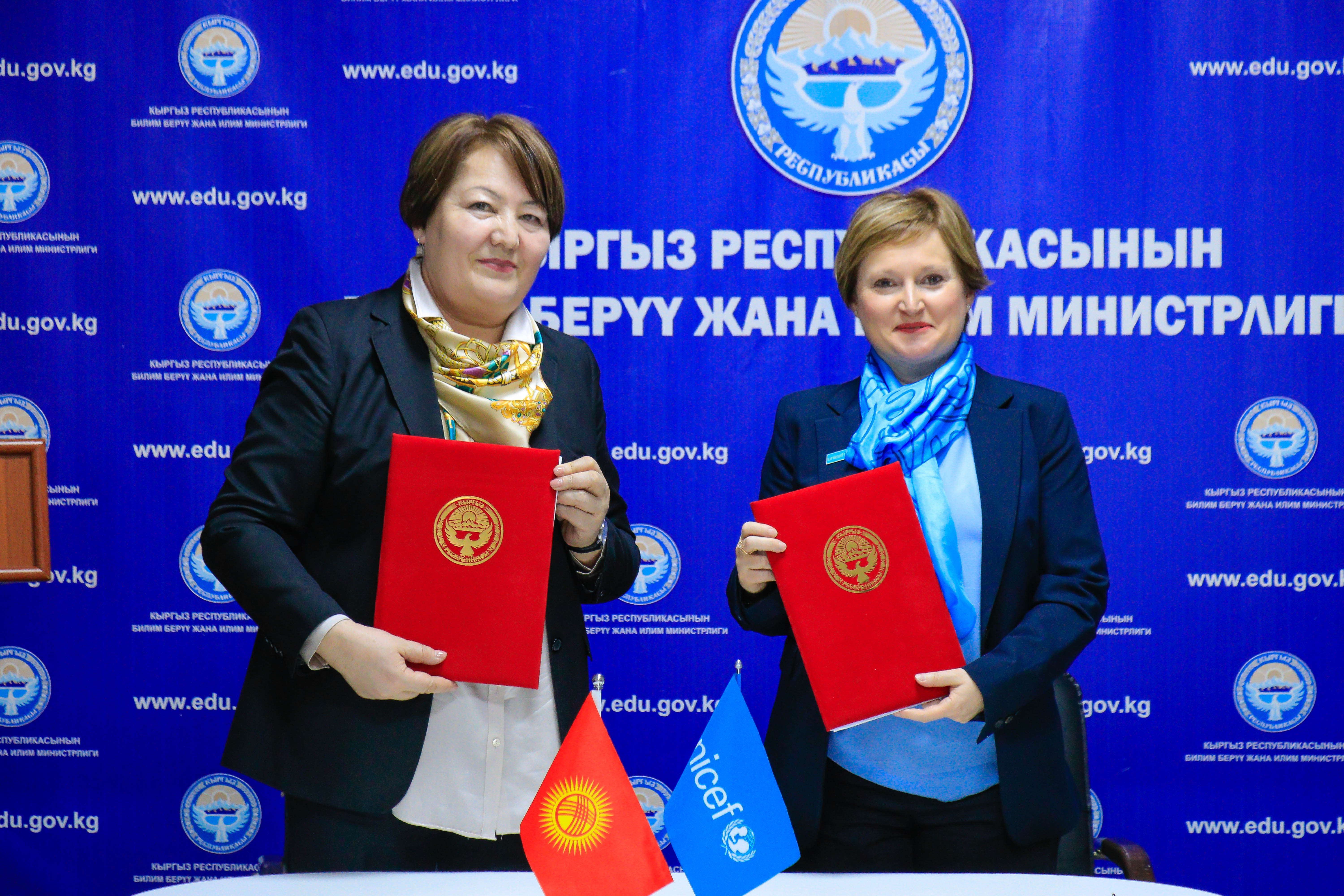Ага ылайык, тиешелүү документке министр Догдуркүл Кендирбаева менен ЮНИСЕФтин Кыргызстандагы өкүлүнүн милдетин аткаруучу Кристина Бруджиоло кол койгон.
