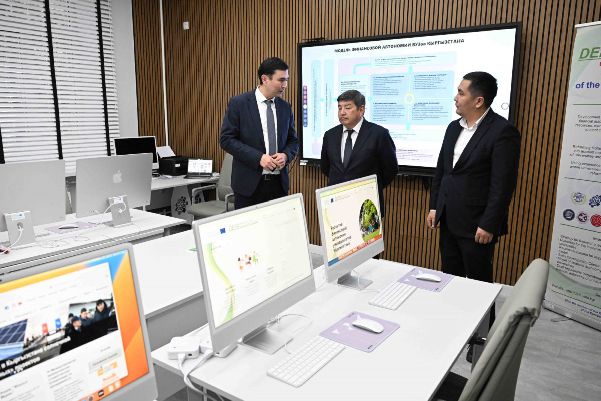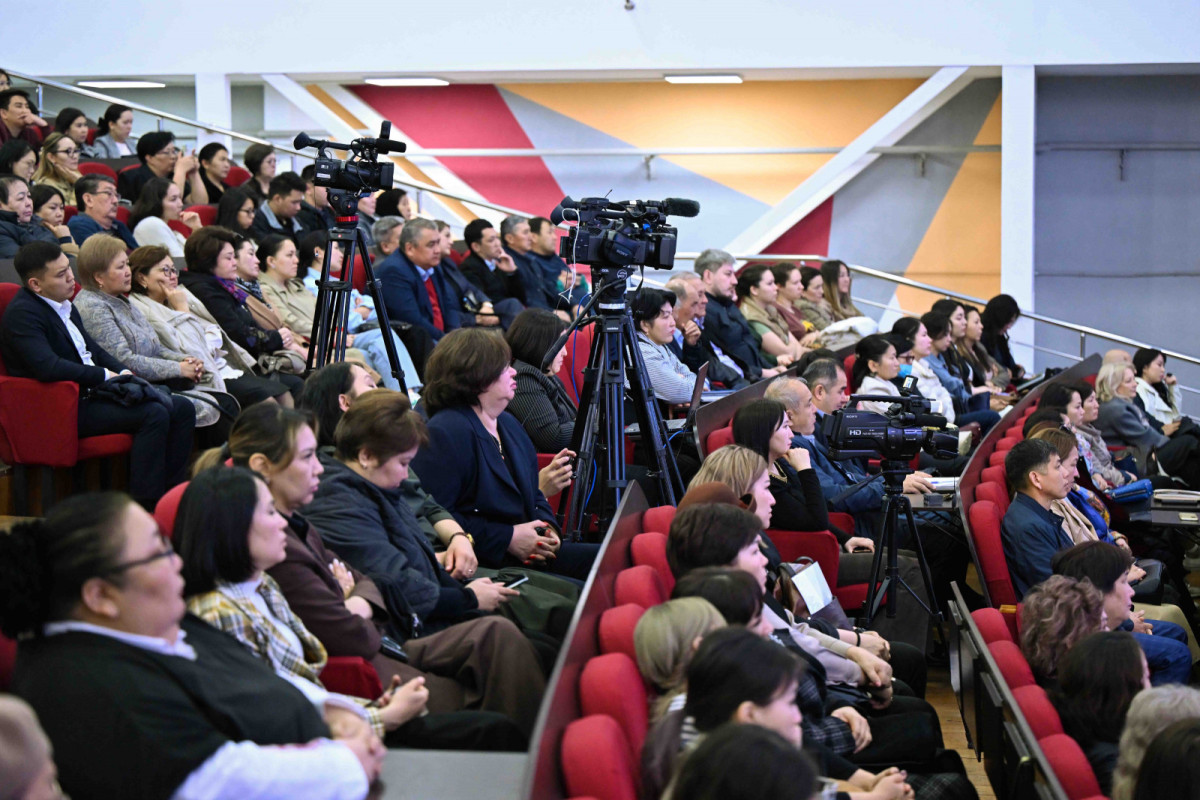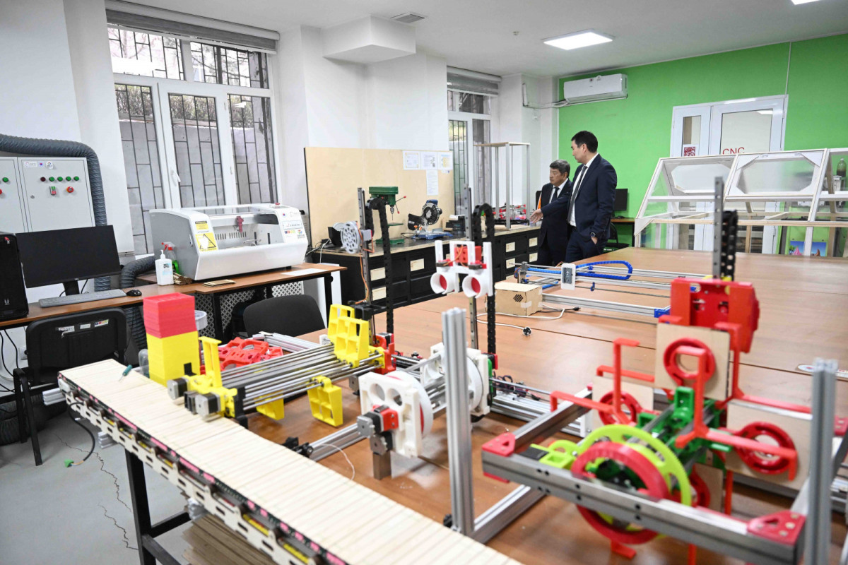 Иш-чаранын алкагында Акылбек Жапаров жолугушуунун катышуучуларынын суроолоруна жооп берип, ошондой эле окуу лабораторияларынын абалы менен таанышты.