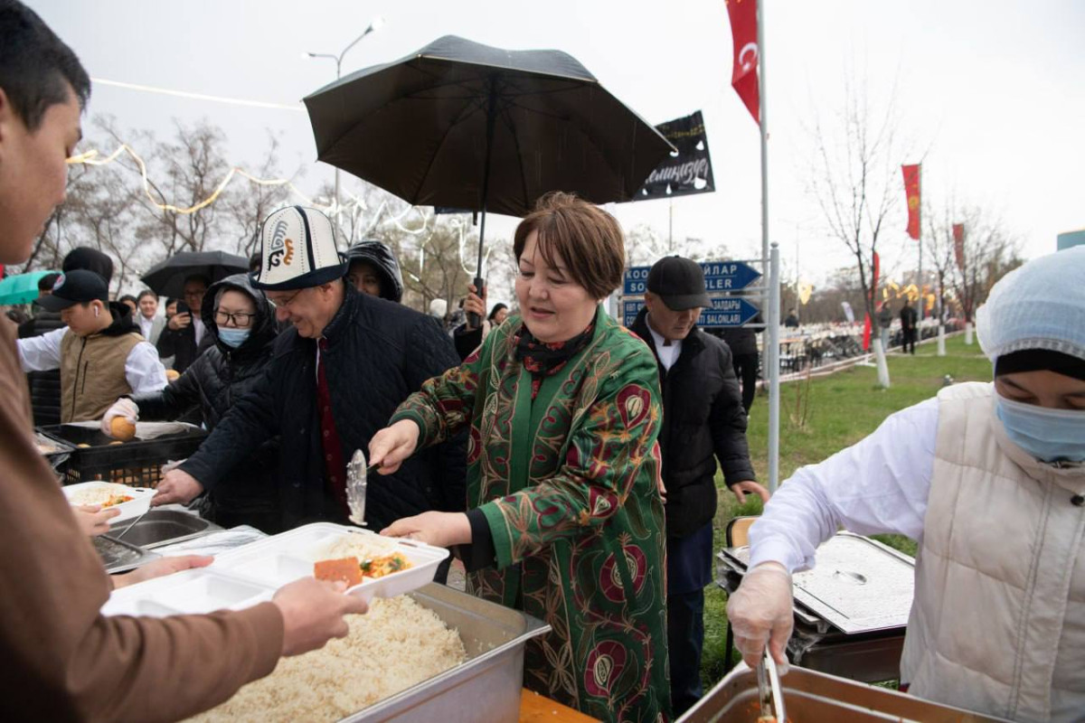 Нөшөрлөп жааган жамгырга жана суук аба-ырайына карабастан ачык асман алдында ооз ачуу кечеси шыктануу жана кубаныч менен өтүп, 3 миңден ашуун адам катышты.