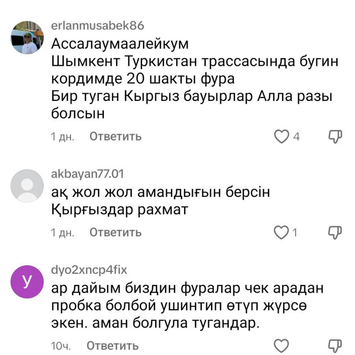 Коңшу казакстандыктар гуманитардык жүктөрдү жөнөткөнү үчүн кыргыз элине жана өлкө бийлигине социалдык тармактар аркылуу массалык түрдө ыраазычылыктарын билдиришүүдө.