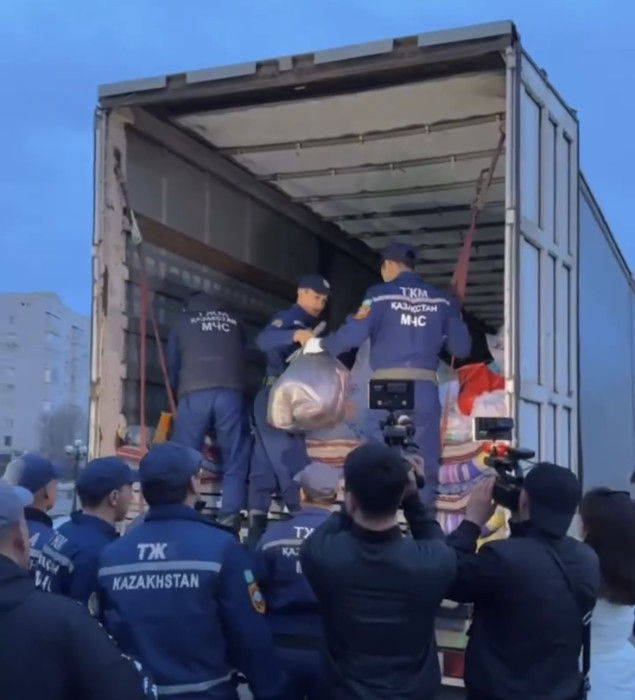 Маалыматка ылайык, Орал шаарында атайын жардамды кабыл алуу жайына куткаруучулардын, шаар тургундарынын жардамында болжол менен 80 тонна жүк түшүрүлдү.