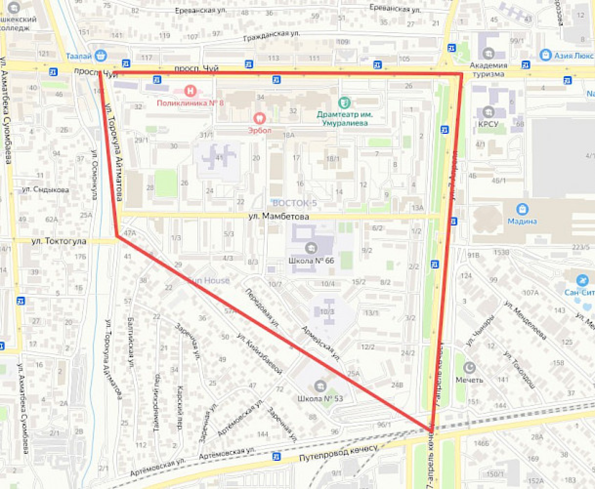 Маалыматка ылайык, газ Төрөкүл Айтматов – 7 Апреля – Чүй проспектиси – Армейский көчөлөрү менен чектелген аймакта өчүрүлөт.