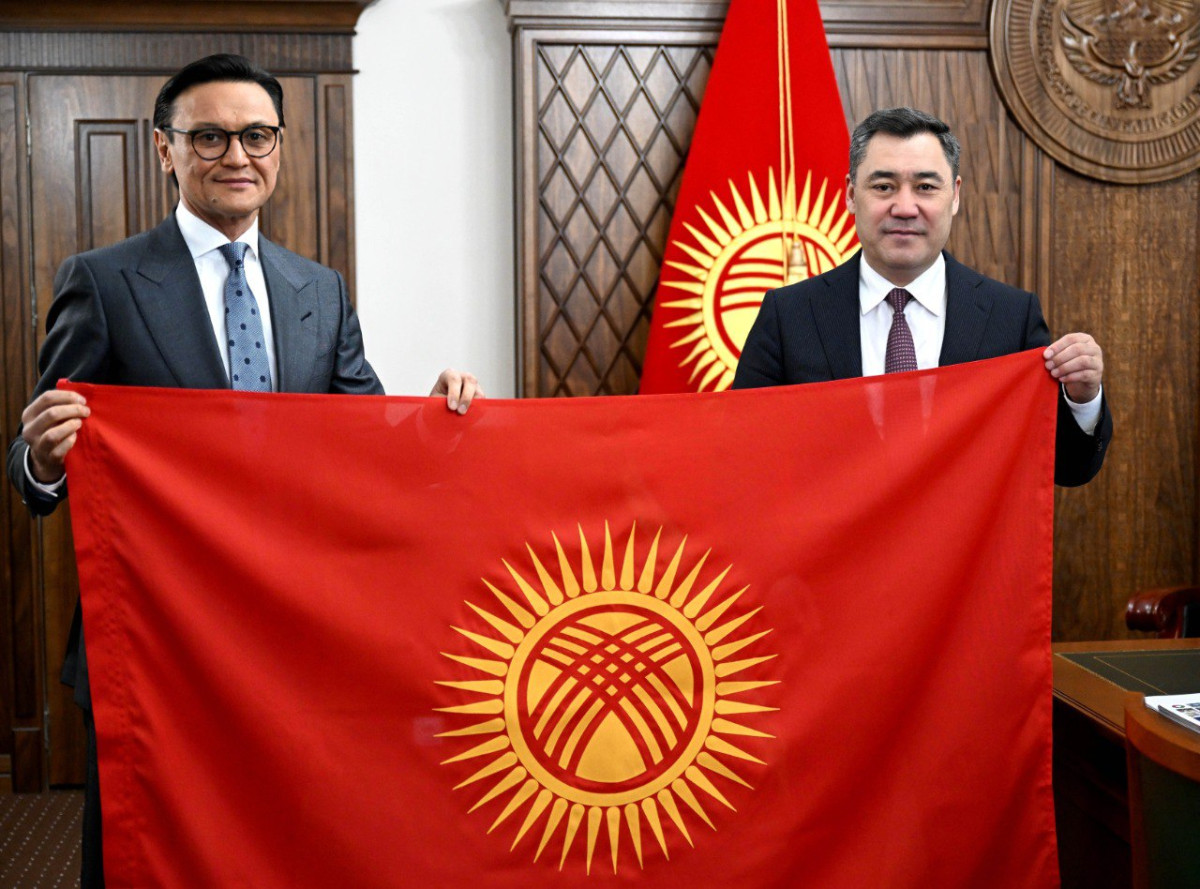 Ошондой эле өлкө башчы Эдуард Кубатовго Кыргызстандын желегин тапшырып, чокуларды багындырууда ийгиликтерди каалады.