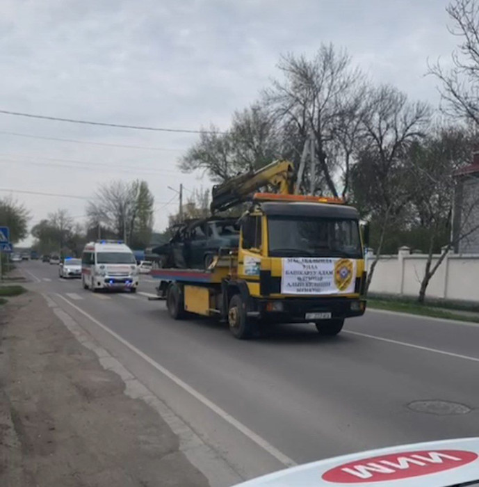 Анда өтө оор кырсыктын айынан жарактан чыккан унааларды эвакуаторлор жүктөп алып, жарандарга көрсөтүү менен түшүндүрүү иштери дагы жүргүзүлүүдө.