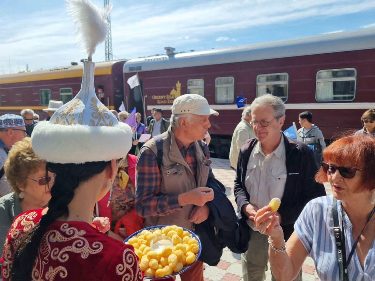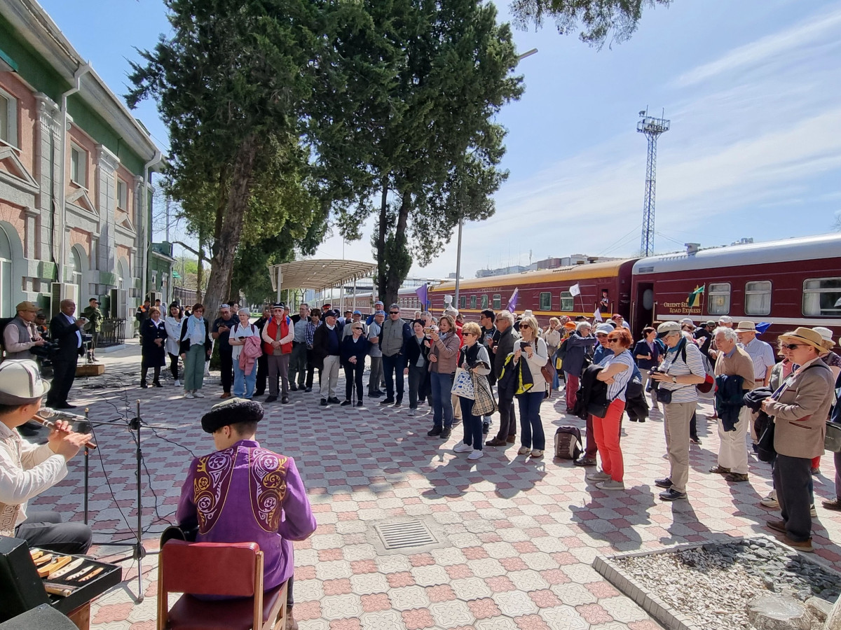 Бүгүн, 19-апрелде Бишкек шаарына кезектеги туристтик поезд менен Америка, Европа жана түштүк Америкадан жалпы 70тен ашык саякатчылар келишти.