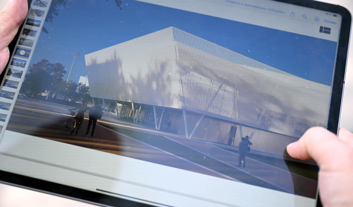 Мамлекет башчысына ал жерде 45 миң орундуу футболдук стадиондун долбоорун көрсөтүштү, ошондой эле аталган объекттин башкаларга салыштырмалуу уникалдуу өзгөчөлүктөрү жөнүндө маалымат берилди. Архитекторлордун айтымында, архитектуралык стиль жана түс гаммасы Бишкектин жана кыргыз элинин мүнөзүнө жана маданиятына туура келет.