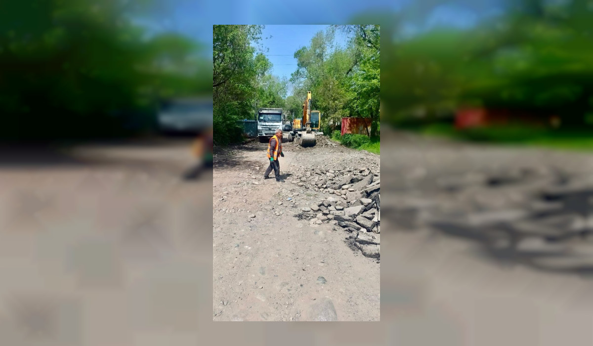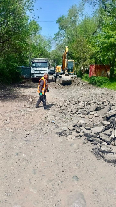 Маалымдалгандай, бүгүнкү күндө "Бишкекасфальтсервис" муниципалдык ишканасынын кызматкерлери эски асфальтты сыйрып, жердин негизин даярдоо боюнча иштерин жүргүзүп жатат.