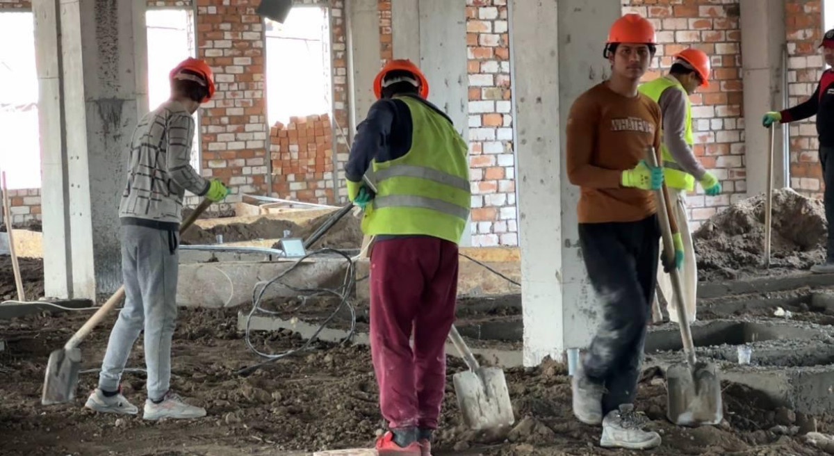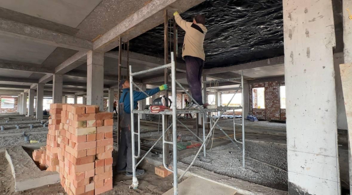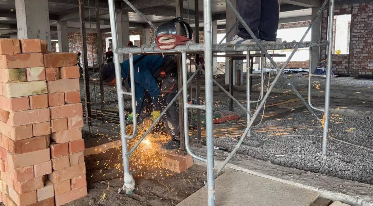 Белгилей кетсек, учурда темир-бетон каркастарын куруу иштери жана чатырын жабуу аяктап, кирпич коюу иштери улантылууда.