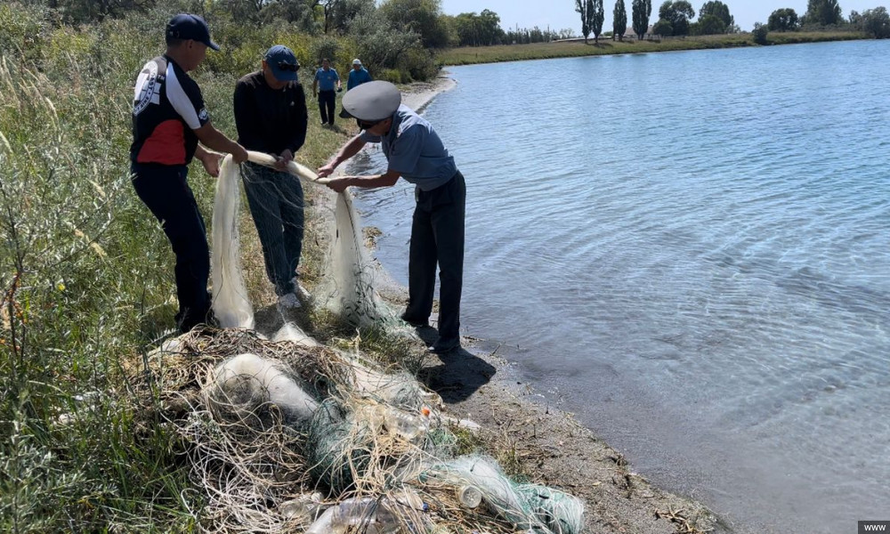 Маалымдалгандай, Ысык-Көл районуна караштуу Кожояр айылынан Корумду айылына чейин көлдөн 24 миң 600 метр балык уулоочу тор чыгарылып, 2985 килограмм ар түрдүү таштандылардан тазаланды.