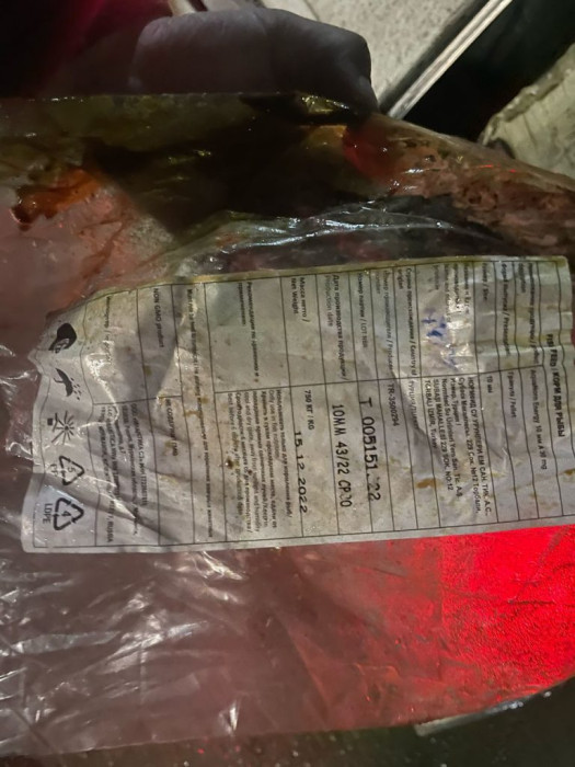 Маалыматка ылайык, ветеринардык кызматтын Ак-Тилек чек ара ветеринардык көзөмөлдөө пунктунун инспекторлору тарабынан Орусиядан Кыргызстанга 22 миң 500 килограмм өлчөмүндө балыктар үчүн жем мыйзамсыз жол менен ташылып келе жаткандыгы аныкталган.