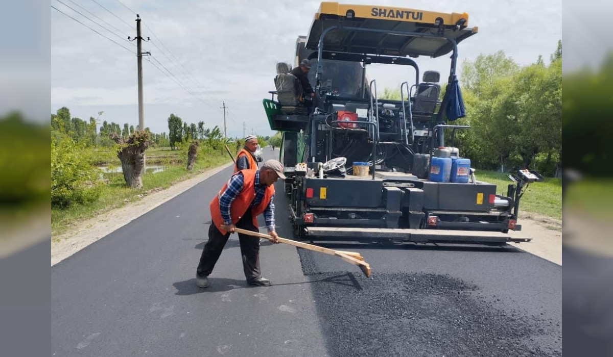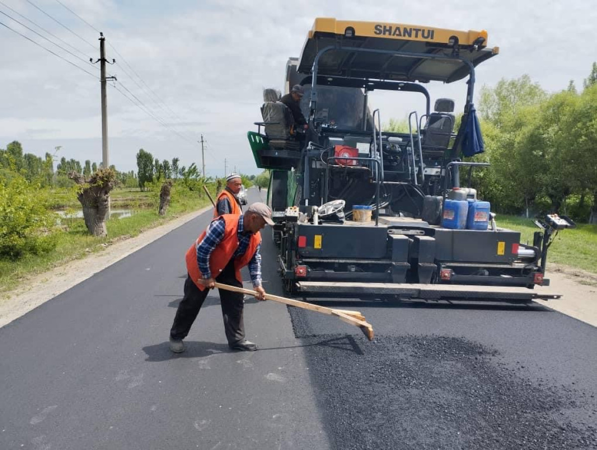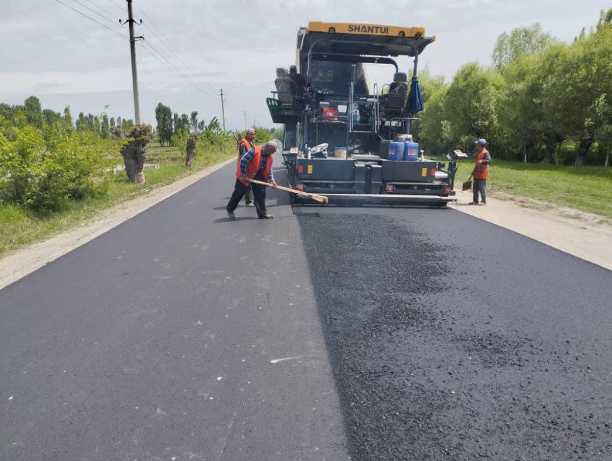 Белгилей кетсек, асфальттоо иштерин "Кыргызавтожол" мамлекеттик ишканасынын №22 Жол тейлөө ишканасы аткарууда.