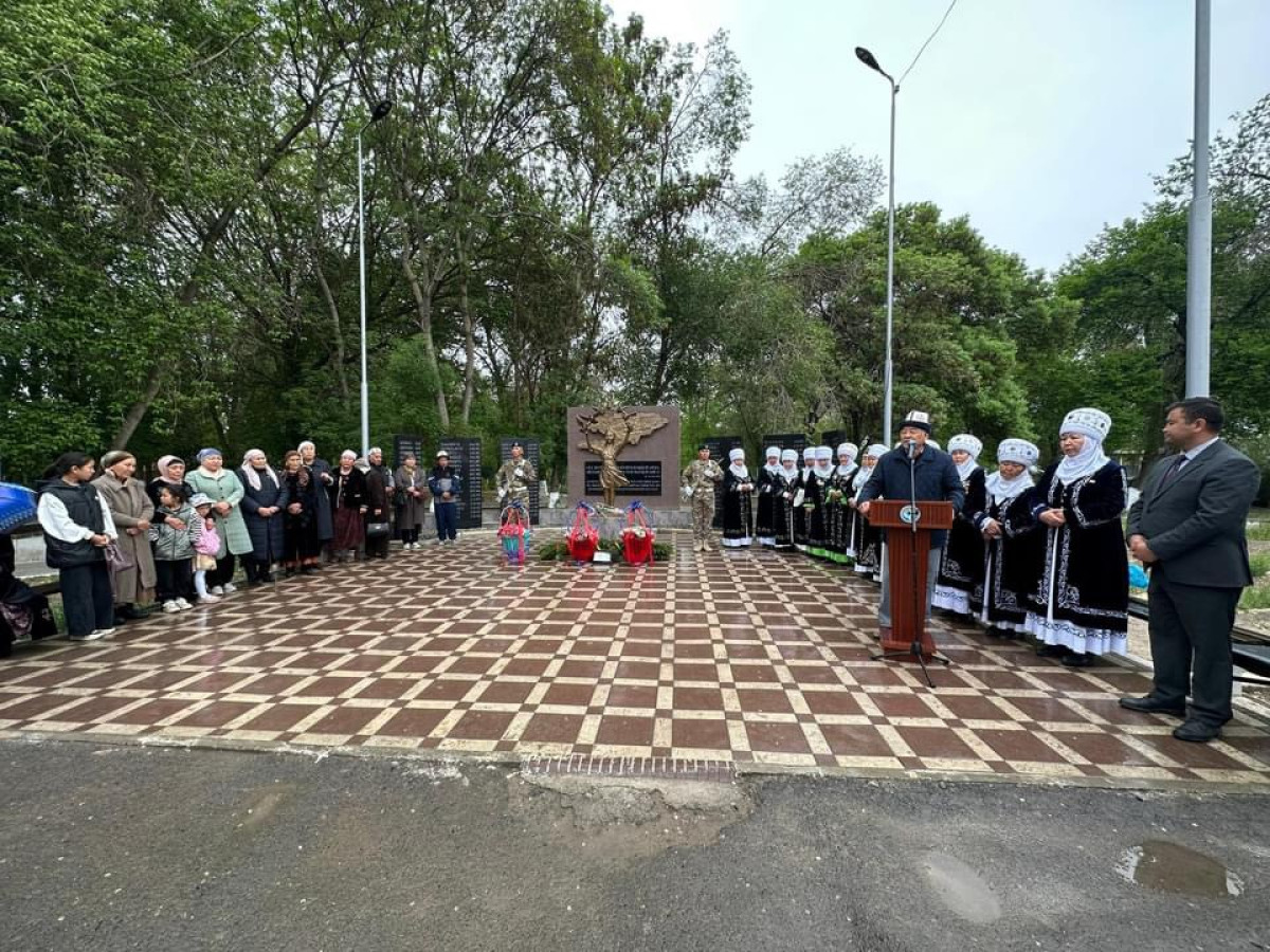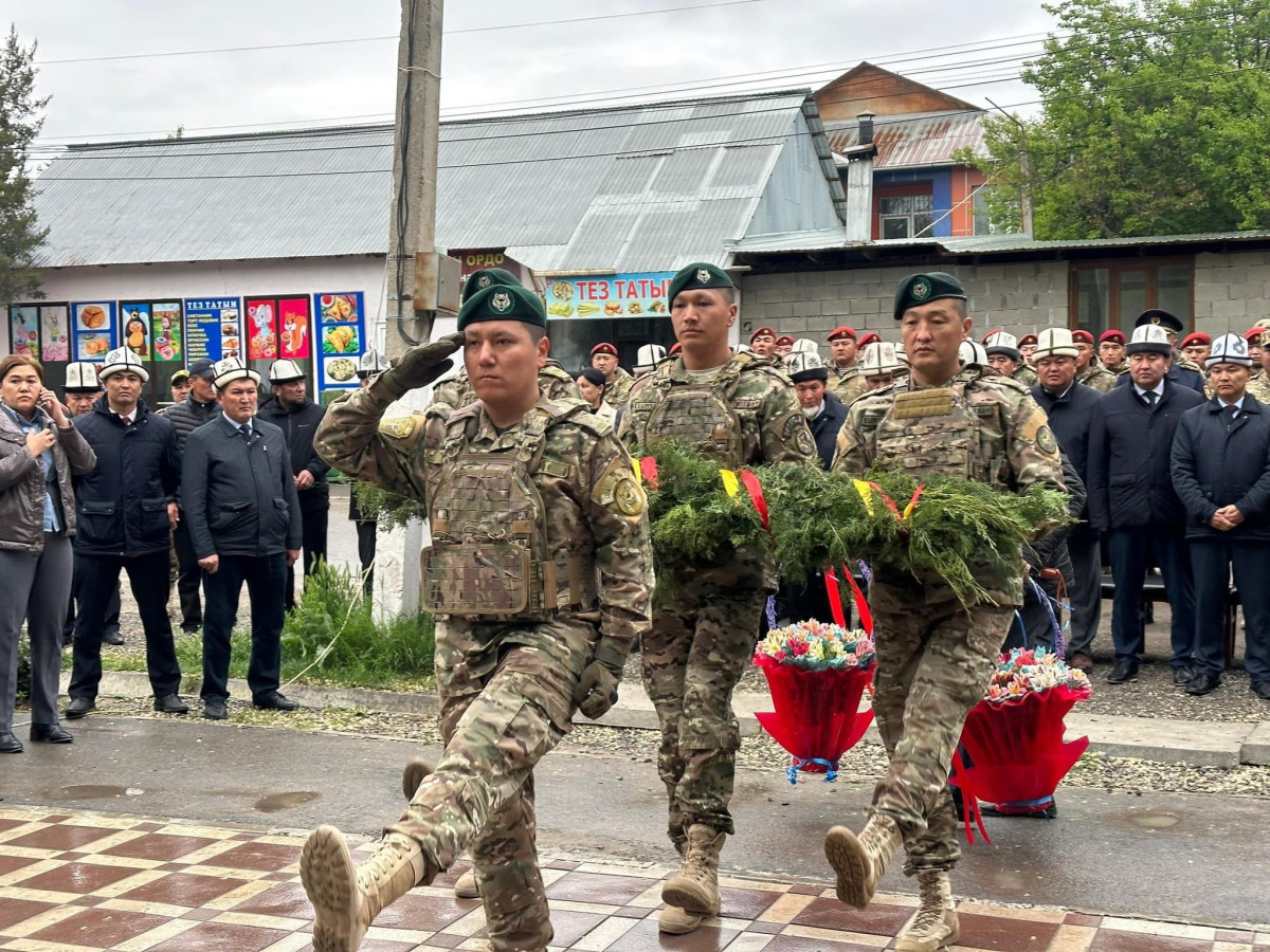 Маалымдалгандай, чек ара курмандыктарынын элесине арналып тургузулган эстелик мемориалына гүл чамбарлар коюлуп, куран окулду.