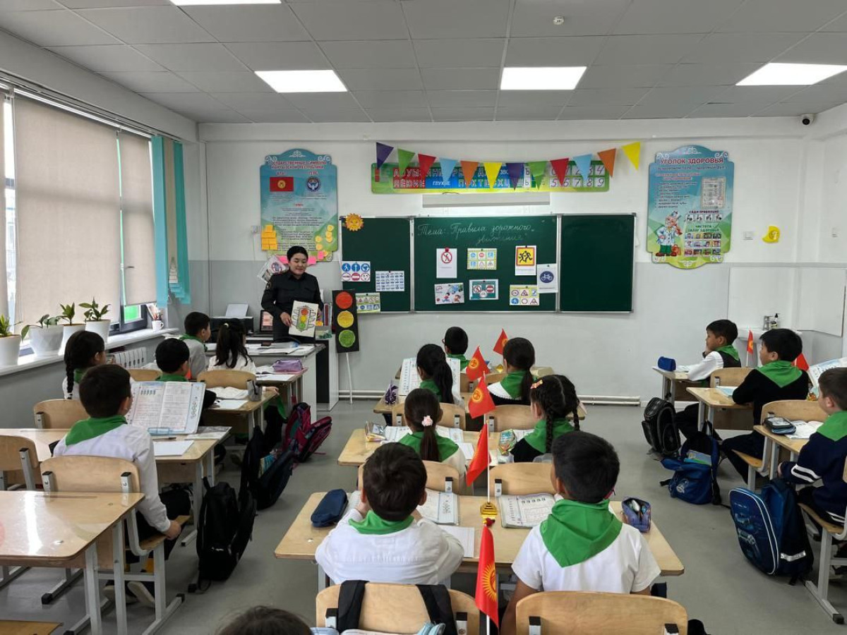 "Сабактын жүрүшүндө милиционерлер балдарга жол кыймылынын бардык белгилерин, светофорлор эмне үчүн керек экенин, жол кыймылынын бардык катышуучулары кандай жүрүшү керектигин жана башка көптөгөн нерселерди түшүндүрдү. Андан сырткары өрт коопсуздугунун эрежелери жөнүндө айтып беришип, өрт өчүрүүнүн баштапкы каражаттарын кантип туура колдонууну дагы үйрөтүштү.