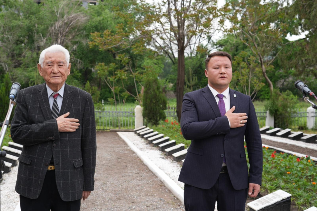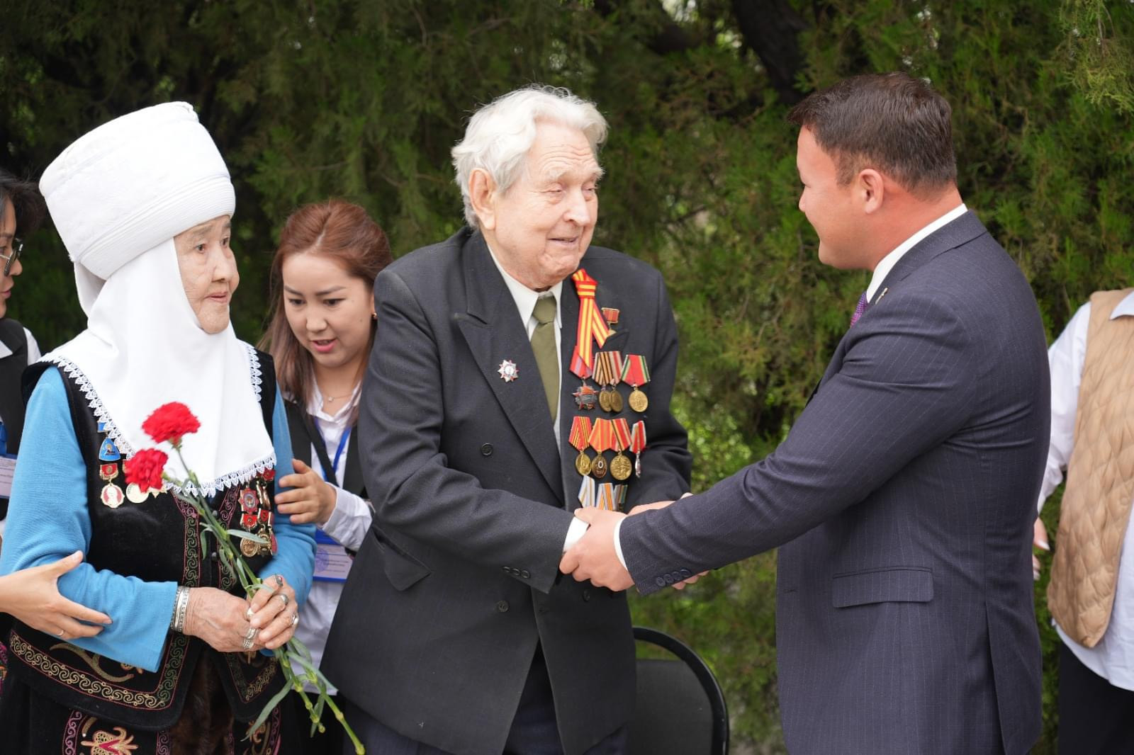Маалымдалгандай, иш-чарага Улуу Ата Мекендик согуштун ардагерлери, Биринчи май районунун акими Сарылбек уулу Улан, социалдык маселелер боюнча башчынын орун басары Айнура Арстамбекова, райондук ардагерлер кеңешинин төрагасы Маркил Ибраев жана райондук социалдык коргоо башкармалыгынын башчысы Рэйна Султанмуратова катышты.