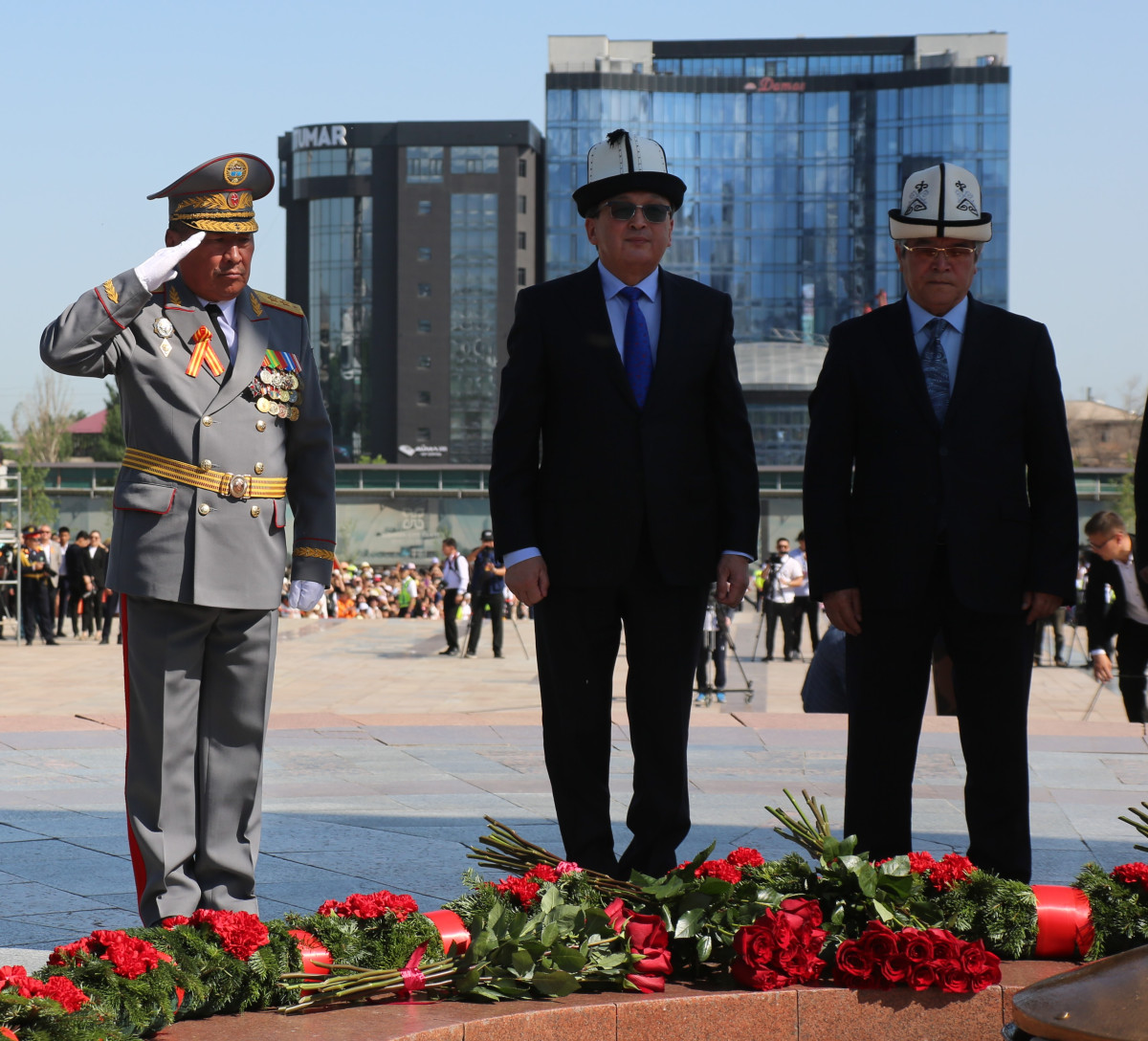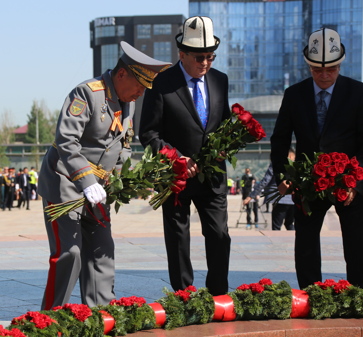 Митинг-реквиемге жогорку кеңештин төрагасы Нурланбек Шакиев, мамлекеттик катчысы Сүйүнбек Касманбетов, коргоо министри генерал-лейтенант Бактыбек Бекболотов, шаардык мэриянын жетекчилери, Улуу Ата Мекендик согуштун жана тылдын ардагерлери, Бишкек гарнизонунун жоокерлери, жаштар, мектеп окуучулары, өсүп келе жаткан муундар, коомчулуктун өкүлдөрү жана борбор калаанын коноктору катышты.