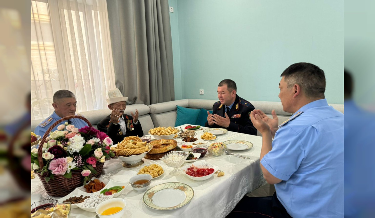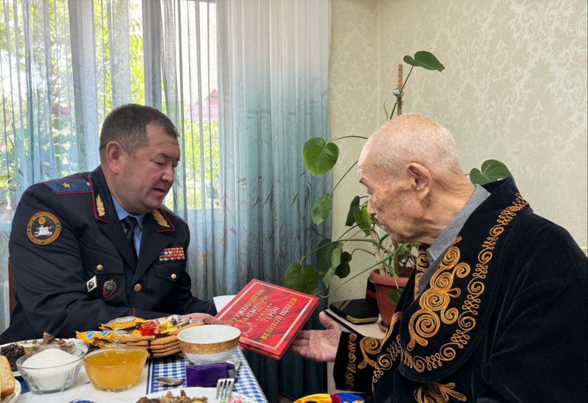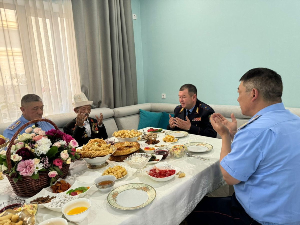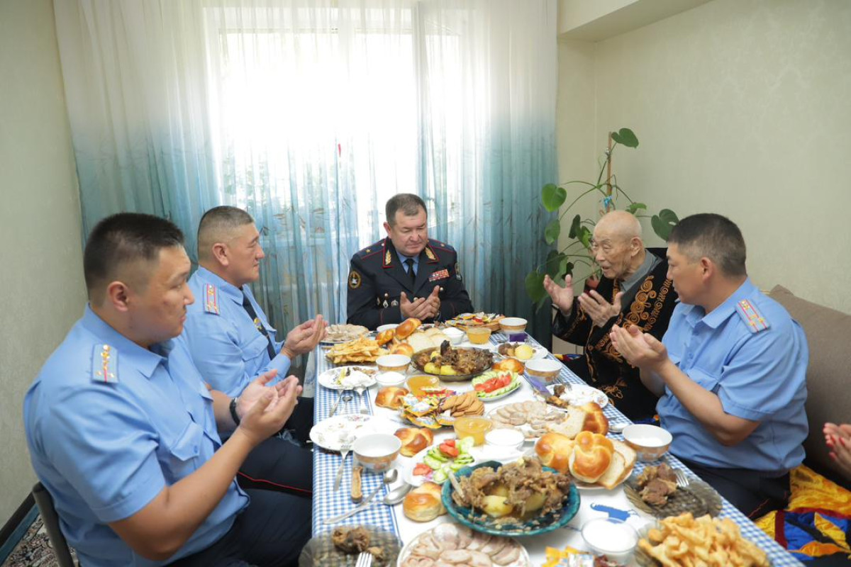 Ички иштер министринин биринчи орун басары Адылбек Бийбосунов жана ИИМдин Кадрлар башкы башкармалыгынын жетекчиси кечээ, 8-майда Жеңиш күнүн утурлай Улуу Ата Мекендик согуштун ардагери Туркенакун Бейшенбаев менен тылдын эмгекчиси Чоюнбек Сагынбаевге барышты.