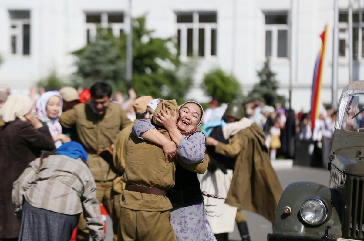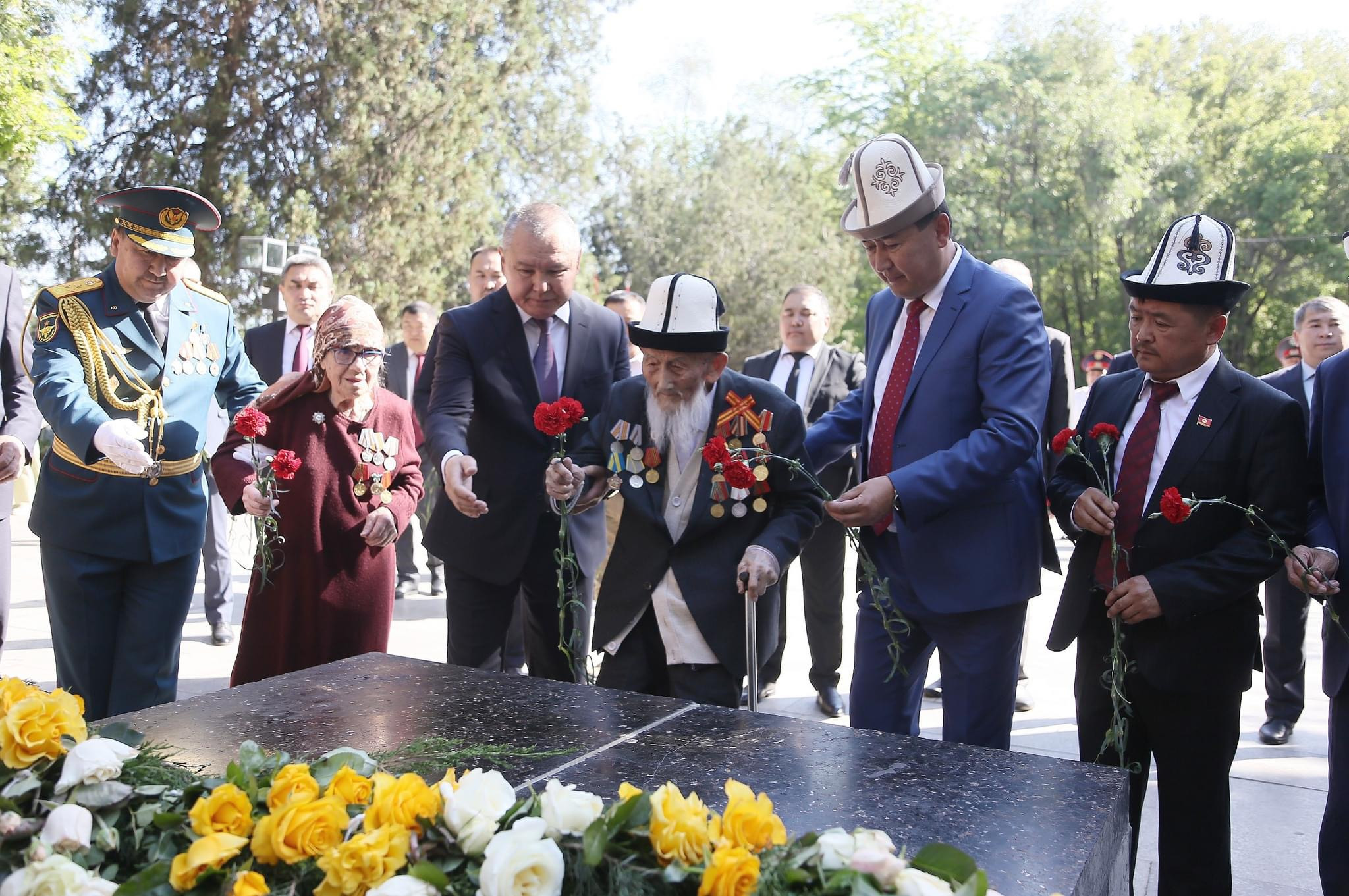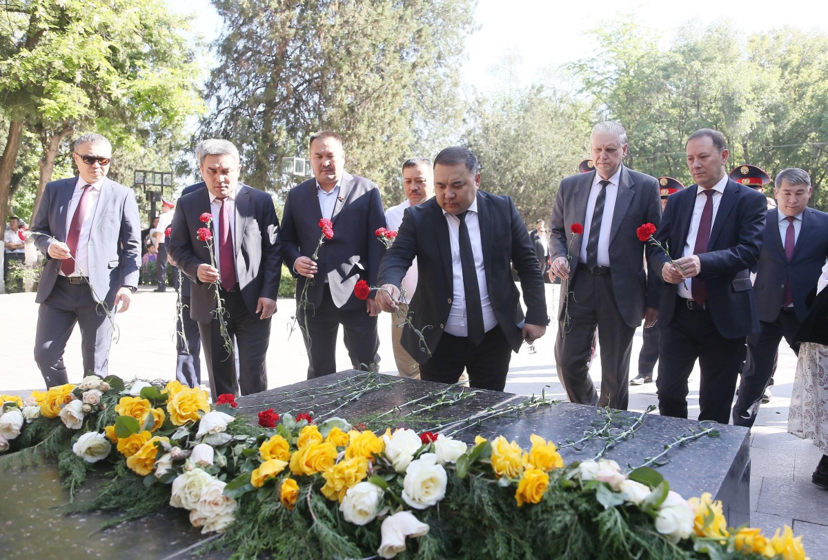 Ага ылайык, Улуу Ата Мекендик согушта курман болгондор эскерилип, “Өчпөс от" мемориалдык комплексине гүлчамбарлар коюлду.