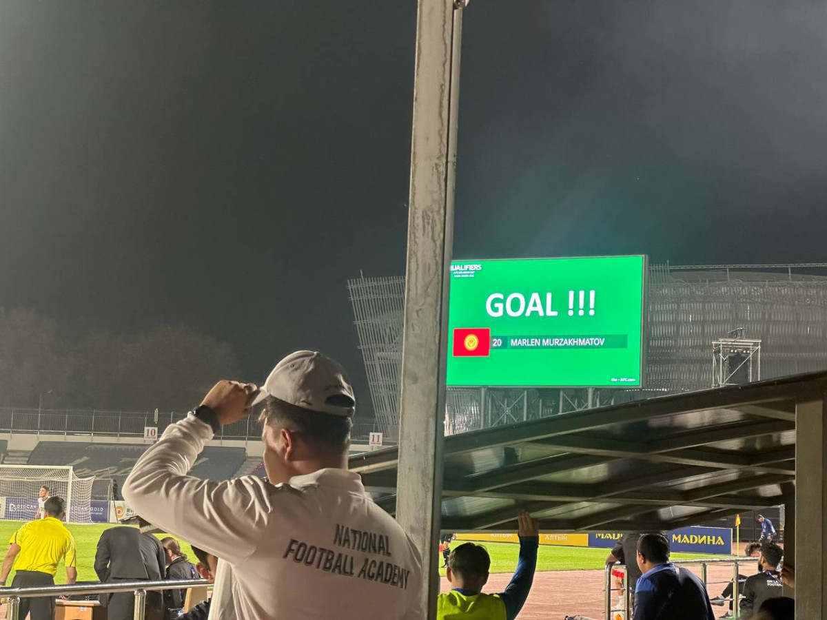 Оюндун биринчи бөлүгүндө кыргызстандык оюнчу Марлен Мырзакматов эки жолу гол киргизди. Азырынча эсеп саны 2:0.