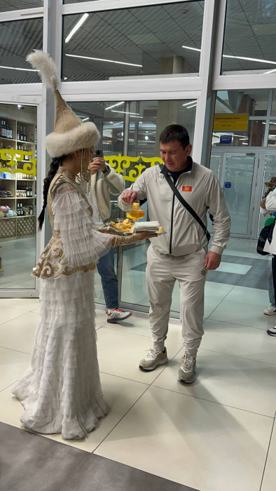Спортчуларды “Манас” эл аралык аэропортунан министрлер кабинетине караштуу Дене тарбия жана спорт мамлекеттик агенттигинин алдындагы Спорттун олимпиадалык түрлөрү боюнча дирекциясынын директору Мелис Тобокелов, спортчулардын жакындары жана күйөрмандары тосуп алышты.