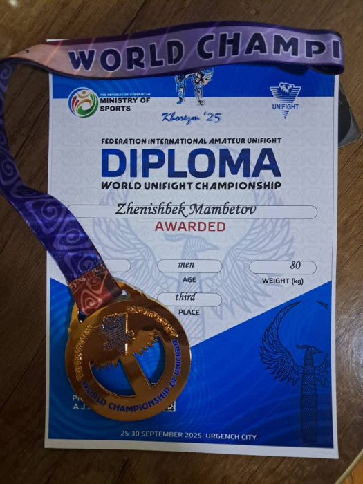 Өзбекстандын Ургенч шаарында өтүп жаткан универсалдык мушташ боюнча Дүйнө чемпиондугунда кыргызстандык спортчу Жеңишбек Мамбетов коло байгеге ээ болду. Бул тууралуу Дене тарбия жана спорт мамлекеттик агенттигинен билдиришти.