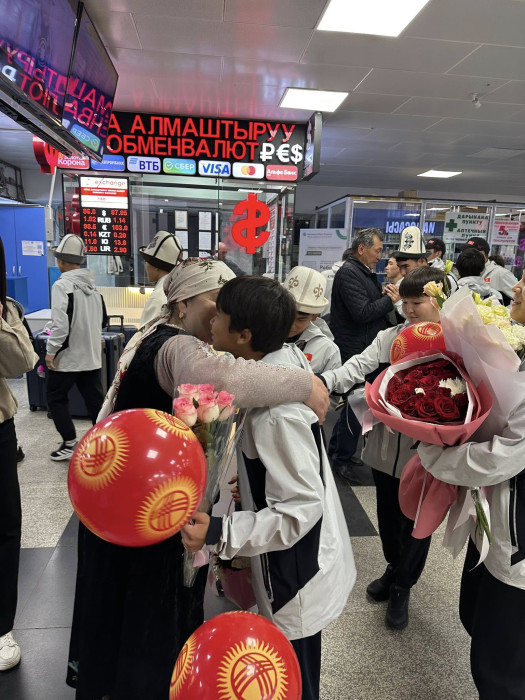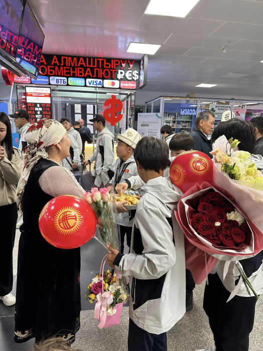 Маалыматка ылайык, жаш балбандарды "Манас" эл аралык аэропортунан Тайманбас олимпиадалык резервдеги адистештирилген балдар-өспүрүмдөр спорт мектебинин директору Бактыяр Бокоев, күрөш федерациясынын өкүлдөрү жана спортчулардын жакындары тосуп алышты.
