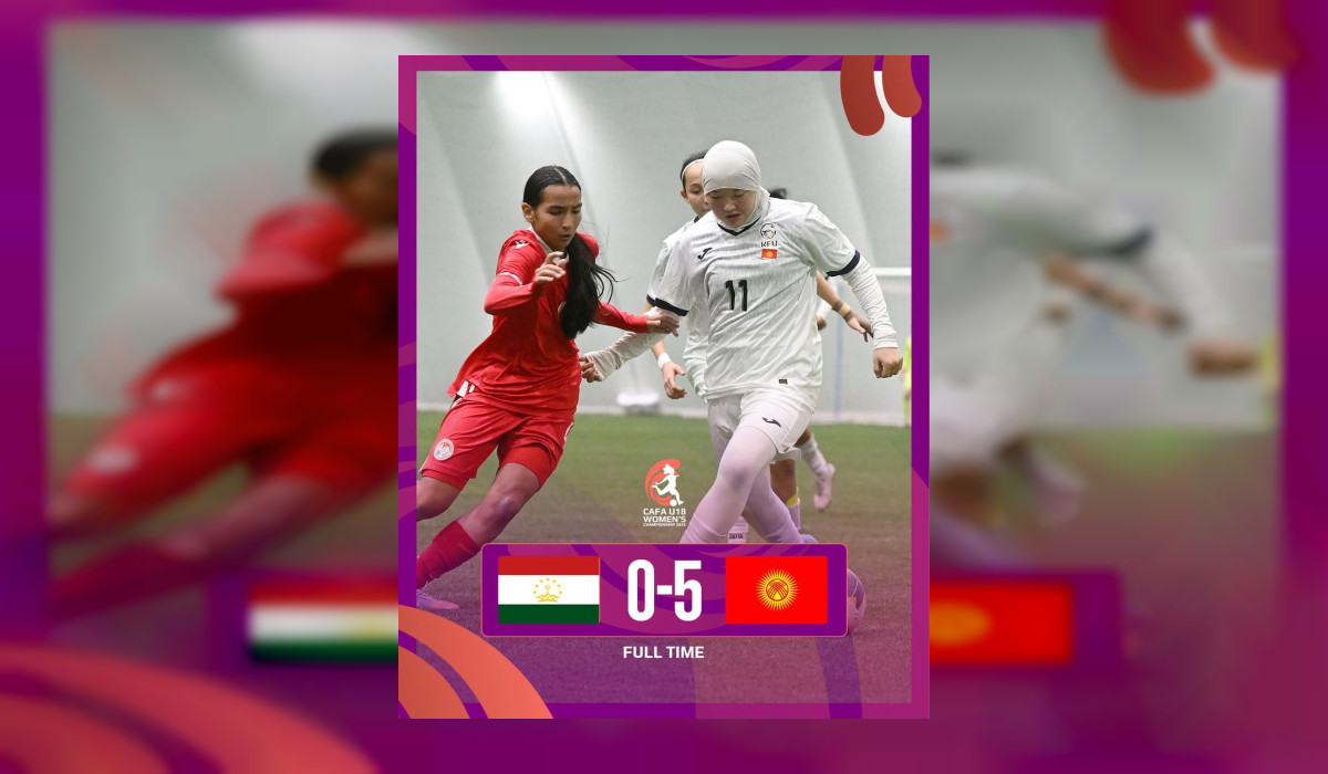 Бүгүнкү беттеште кураманын кыздары 5:0 эсебинде тажистандык футболчуларды ири эсеп санында жеңди. Голдордун авторлору – Сумая Махаматсалиева (17'), Анеля Асанбекова (27'), Акылай Мейманалиева (30'), Акмарал Саякбаева (66', 68').