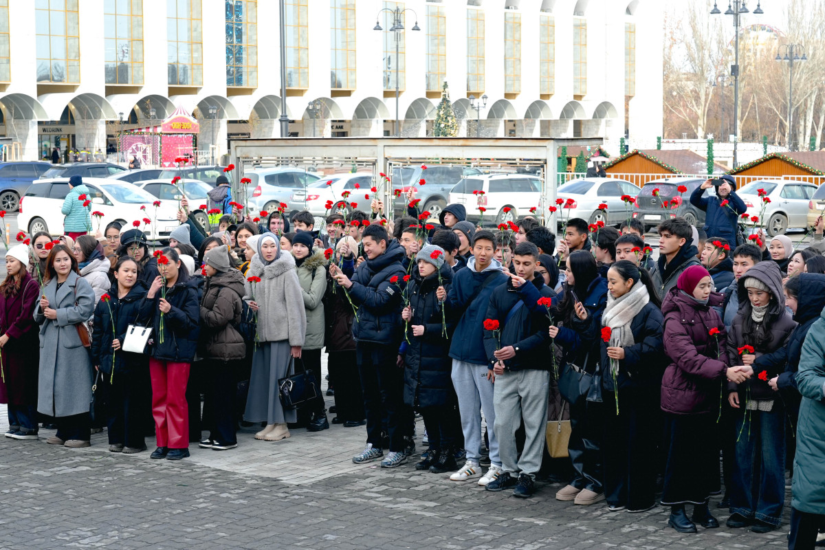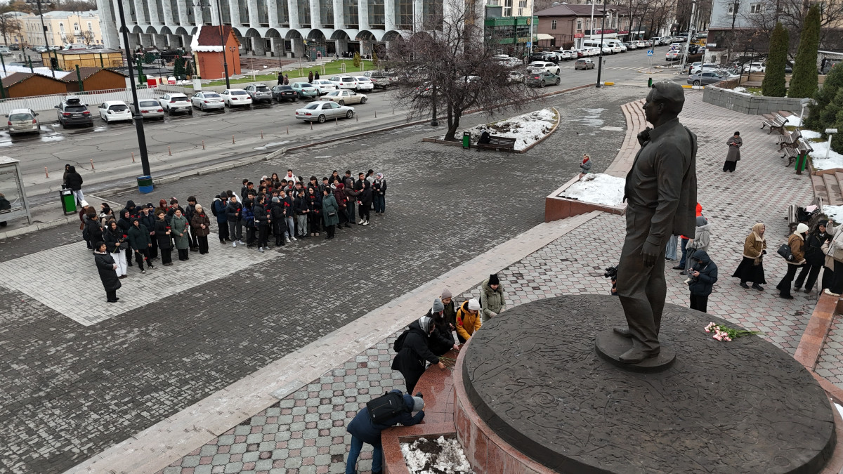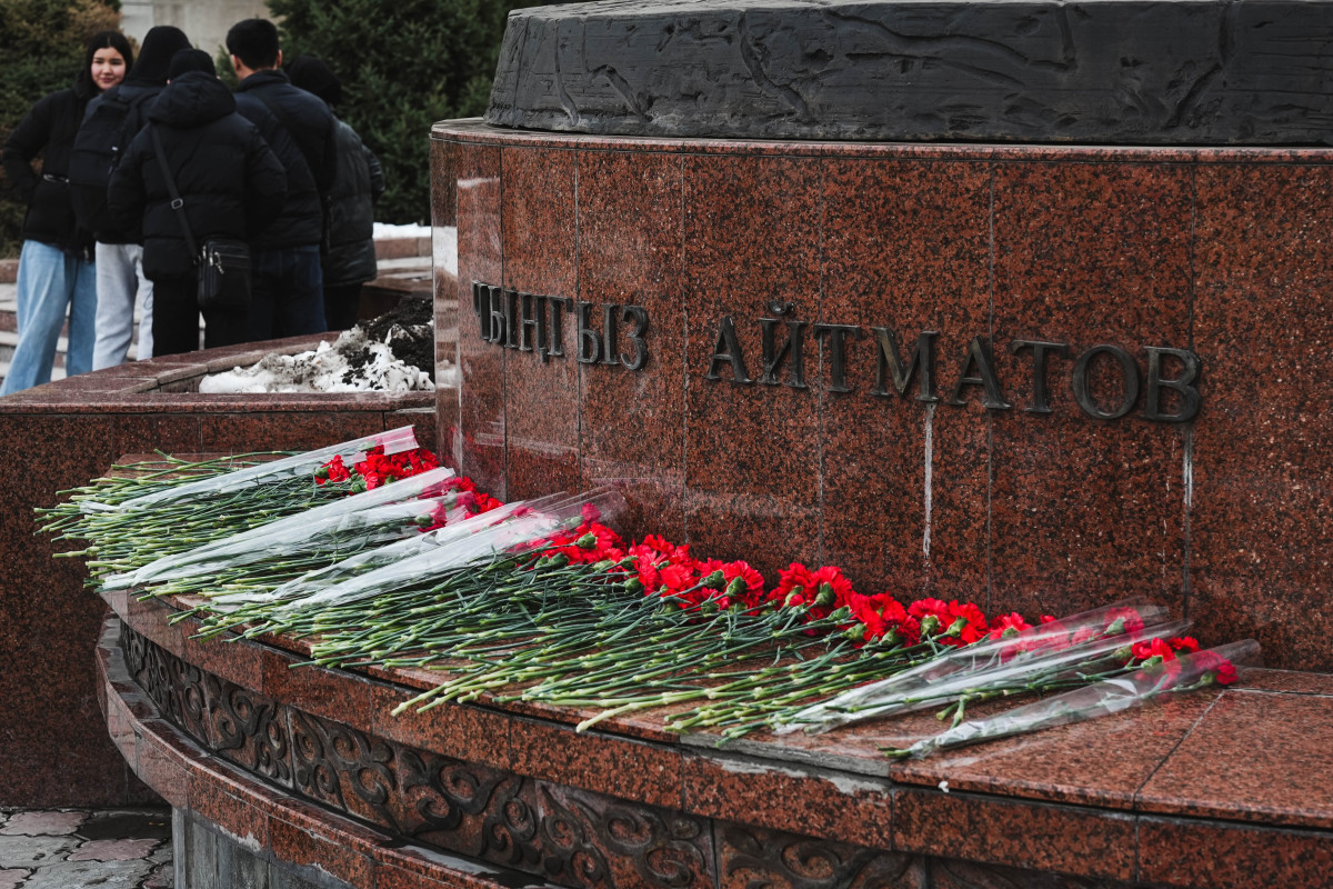 Улуттук адабият күнүндө жана дүйнөгө белгилүү жазуучу Чыңгыз Айтматовдун туулган күнүн утурлай "Евразия" коммерциялык эмес уюмунун 100дөн ашык ыктыярчысы анын эстелигинин жанында чогулуп, классикалык чыгармалардын авторунун эстелигине гүлчамбарларды коюшту.