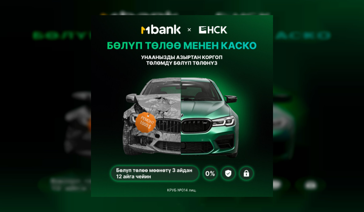 «Бөлүп төлөө менен КАСКО» кызматы MBANK менен ЖАК "НСК" биргеликте авто камсыздандырууну жеңил жана жеткиликтүү кылат. Полисти азыр эле онлайн, бөлүп төлөө менен ала аласыз.