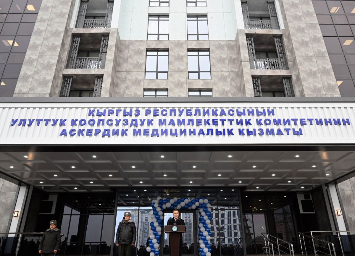 Президент Садыр Жапаров бүгүн, 30-январда Бишкек шаарындагы Улуттук коопсуздук мамлекеттик комитетинин Аскердик-медициналык кызматынын жаңы имаратынын ачылыш аземине катышты.