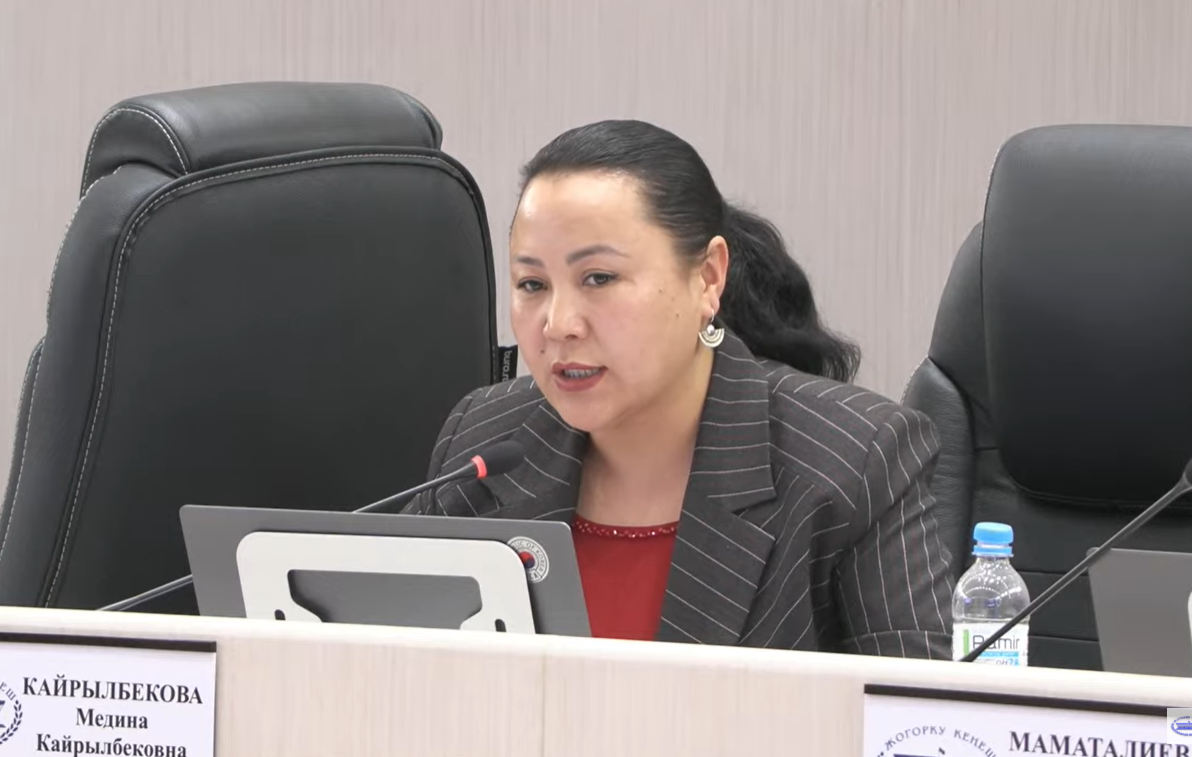 Жогорку Кеңештин бүгүнкү, 5-февралдагы жыйынында депутат Медина Кайрылбекова аймактардагы мамлекеттик кызматкерлерди калкты тейлөөдө сылык болууга чакырды.