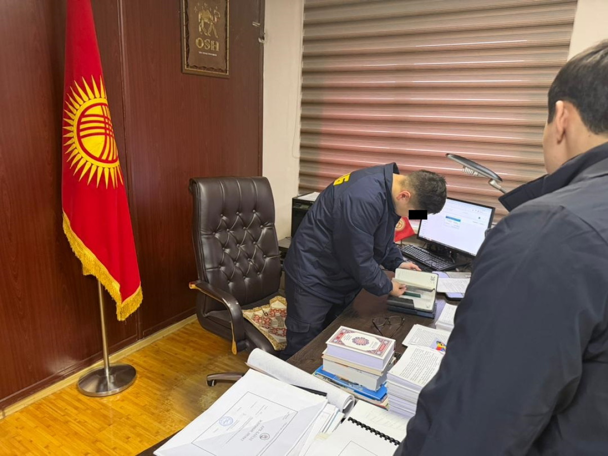 Учурда кылмыш ишин иликтөөнүн алкагында Ош шаарындагы шаар курулушу чөйрөсүндөгү коррупциялык мүнөздөгү кызматтык кылмыштарды аныктоо боюнча иштер уланууда.