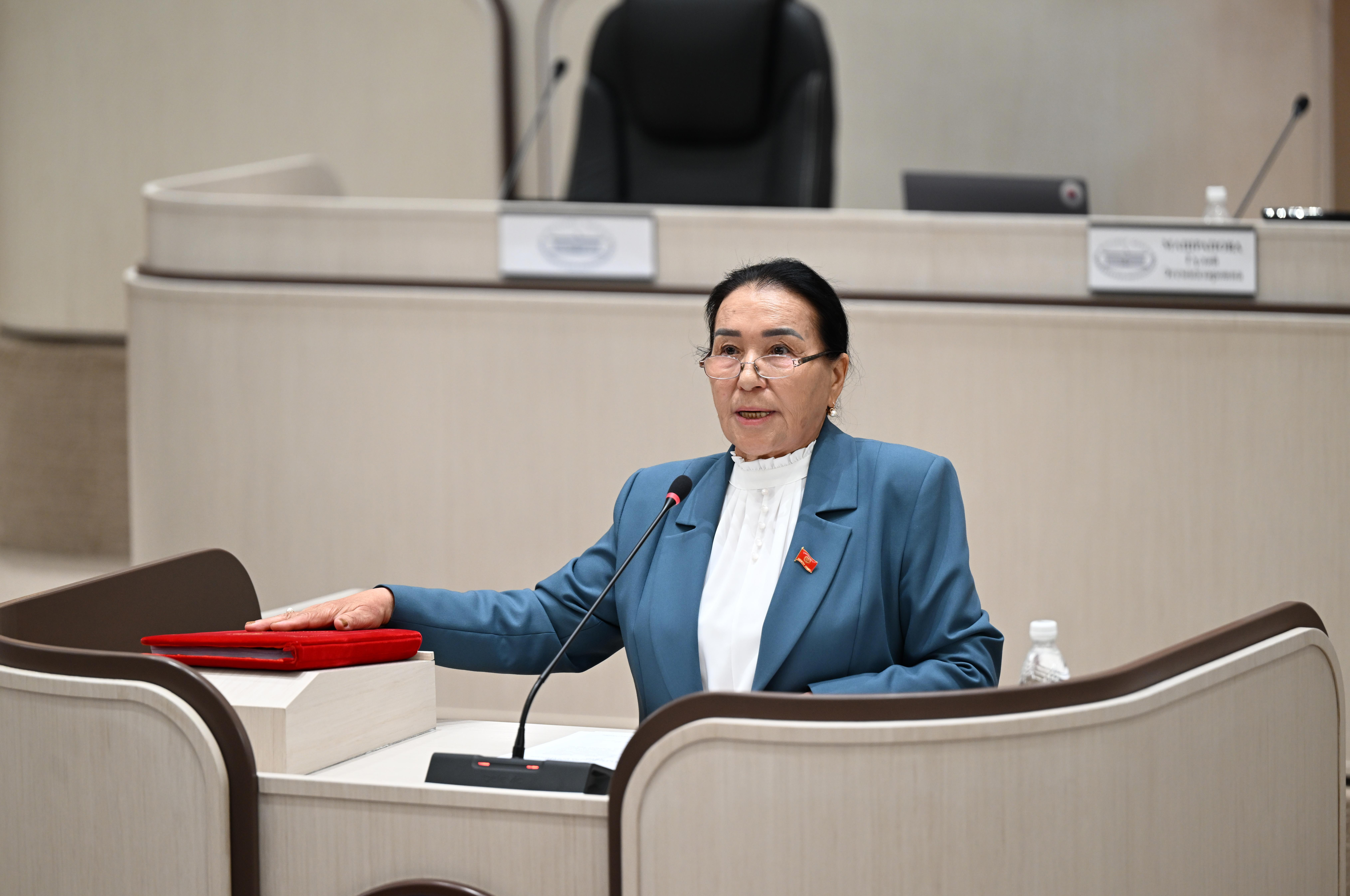 Депутат Гүлай Машрапова эмгек министринин орун басары Айнур Орозбаеванын комитет жыйынына келбегенин сынга алды.