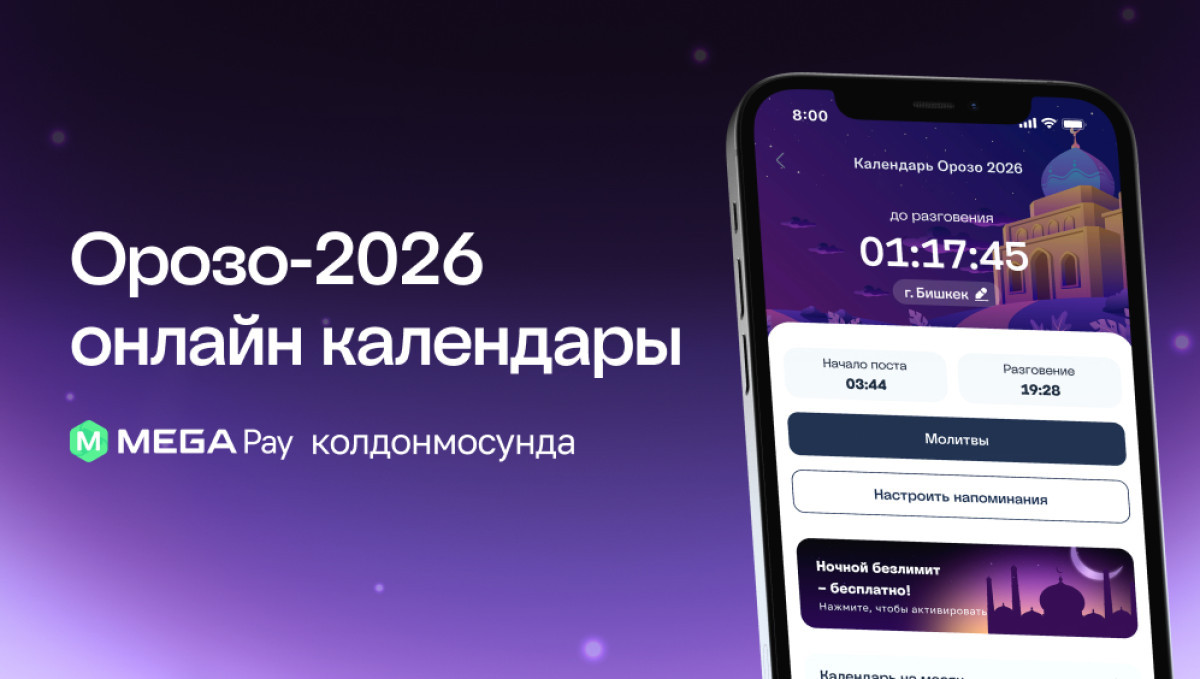 MEGA мамлекеттик уюлдук байланыш оператору бардык кыргызстандыктарды руханий тазаруунун, кайрымдуулуктун жана жакшы иштердин мезгили болгон ыйык Орозо айы менен куттуктайт.