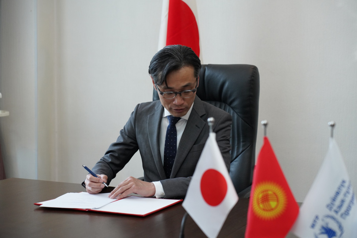 Маалыматка ылайык, тийиштүү долбоорго кол коюу аземине министрдин орун басары Мирбек Дүйшеев, Япониянын Кыргызстандагы элчиси Хирано Рюити жана БУУнун Кыргызстандагы өкүлү Кожиро Накай катышты.