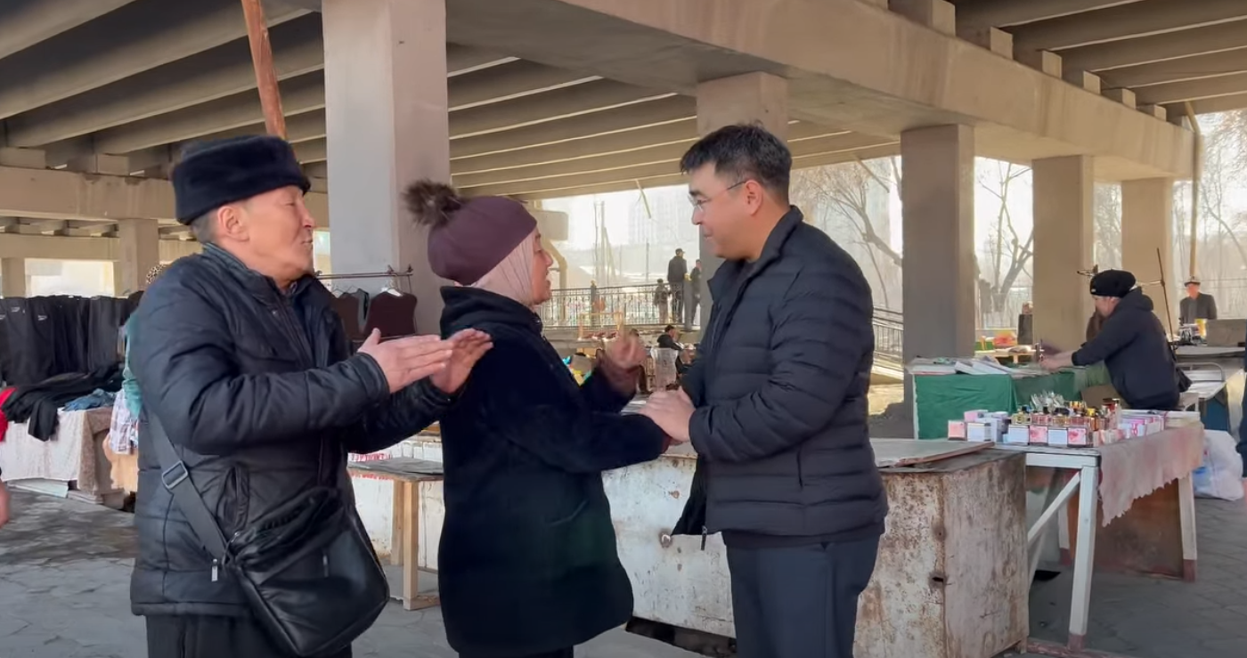 Мэриянын маалымат кызматы билдиргендей, жаңы мэр алгачкы рейдин Ак-Буура дарыясынын жээгинде жайгашкан эски Ош базарынын аймагын жеринде көрүп чыгуу менен баштады. Анда сунушталып жаткан долбоорлор менен таанышты.
