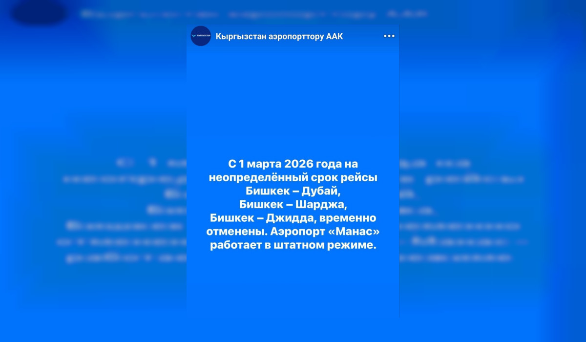Кыргызстан аэропорттор ишканасы бүгүн, 1-марттан тарта Бишкек-Дубай, Бишкек-Жидда, Бишкек-Шаржа багытындагы каттамдар убактылуу токтотулганын билдирди.