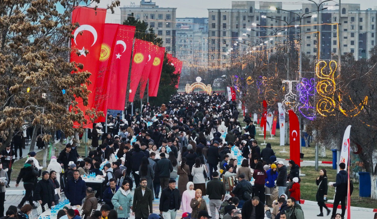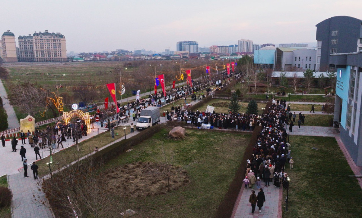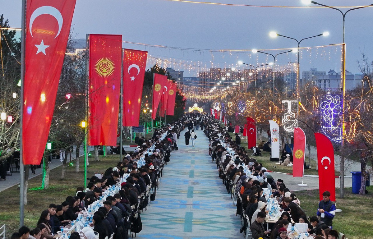 Кыргыз-Түрк "Манас" университетинин Чыңгыз Айтматов атындагы кампусунда беш жылдан бери үзгүлтүксүз өткөрүлүп келе жаткан салттуу ачык асман алдында ооз ачуу программасында болжол менен сегиз миң адам бир дасторкондо чогулду. Иш-чарага министрлер, элчилер, мамлекеттик жетекчилер, окутуучулар, студенттер жана шаар тургундары катышып, Рамазан айынын бөлүшүү жана ынтымак рухун бир дасторкондо чогуу сезишти.
