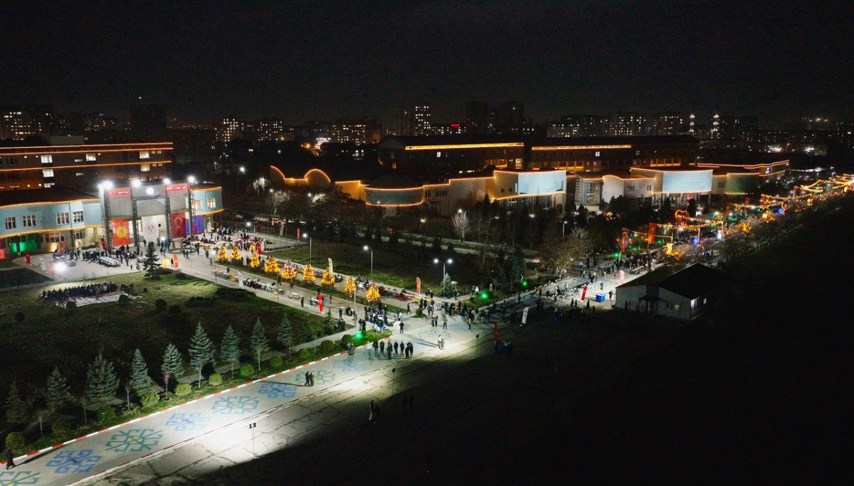 Көчө бою коюлган дасторкондордун айланасындагы бактар жана ректорлук имаратынын алды Рамазан айына мүнөздүү чырактар менен кооздолуп, кампус майрамдык маанайга бөлөндү.