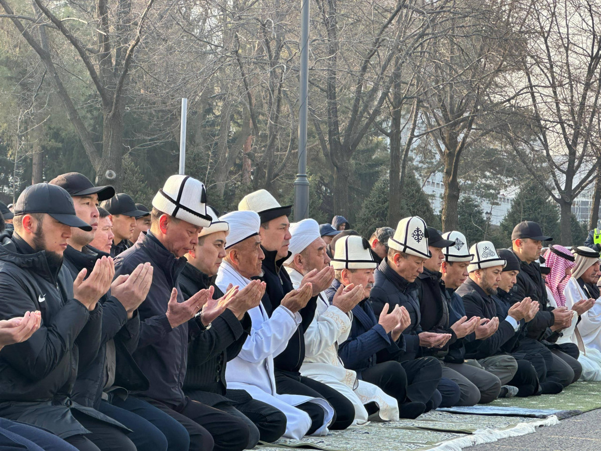 Майрамдык намаз Кыргызстандын миңдеген жарандарынын катышуусунда Бишкек шаарында Турдакун Усубалиев атындагы эски аянтта өттү.