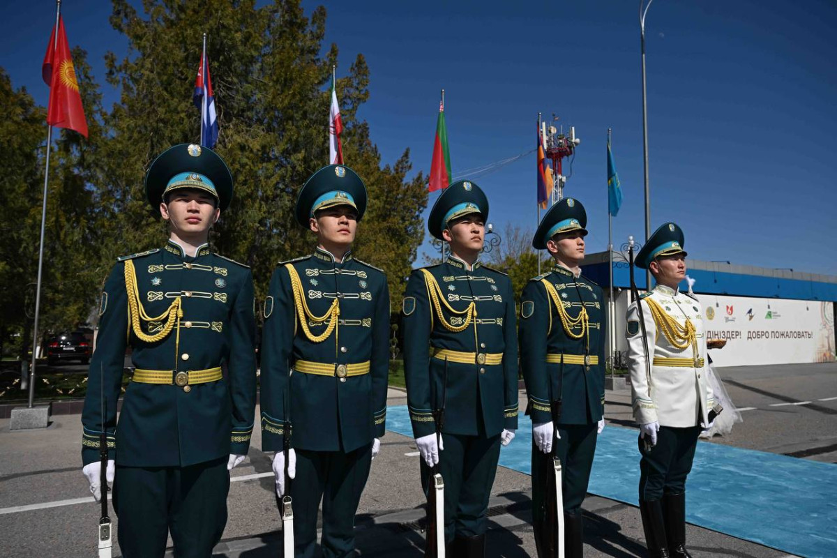 Аэропорттун флагштокторуна Евразия экономикалык биримдигине мүчө өлкөлөрдүн мамлекеттик туулары илинип, ардактуу кароол тизилди.