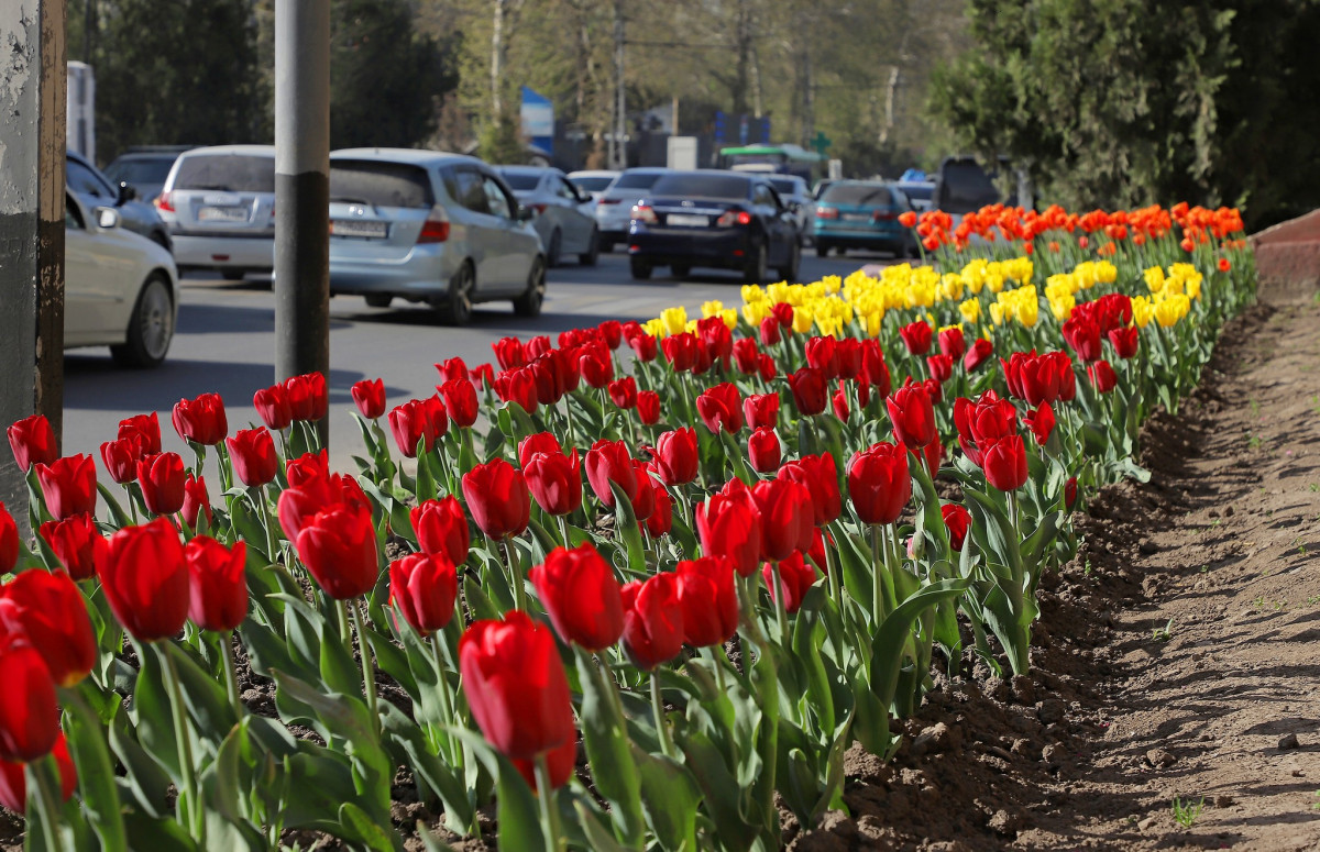 Маалым болгондой, учурда шаардын алты аймагына эрте жаздагы жоогазындар отургузулуп, шаарга өзгөчө көрк тартуулоодо.