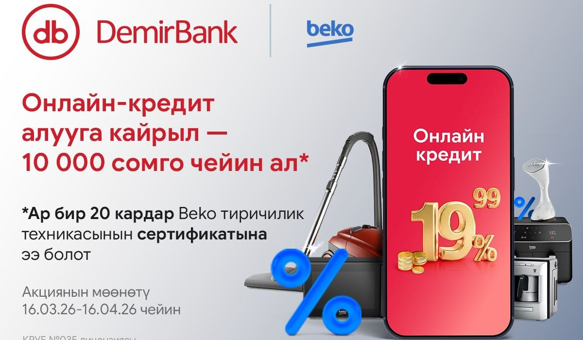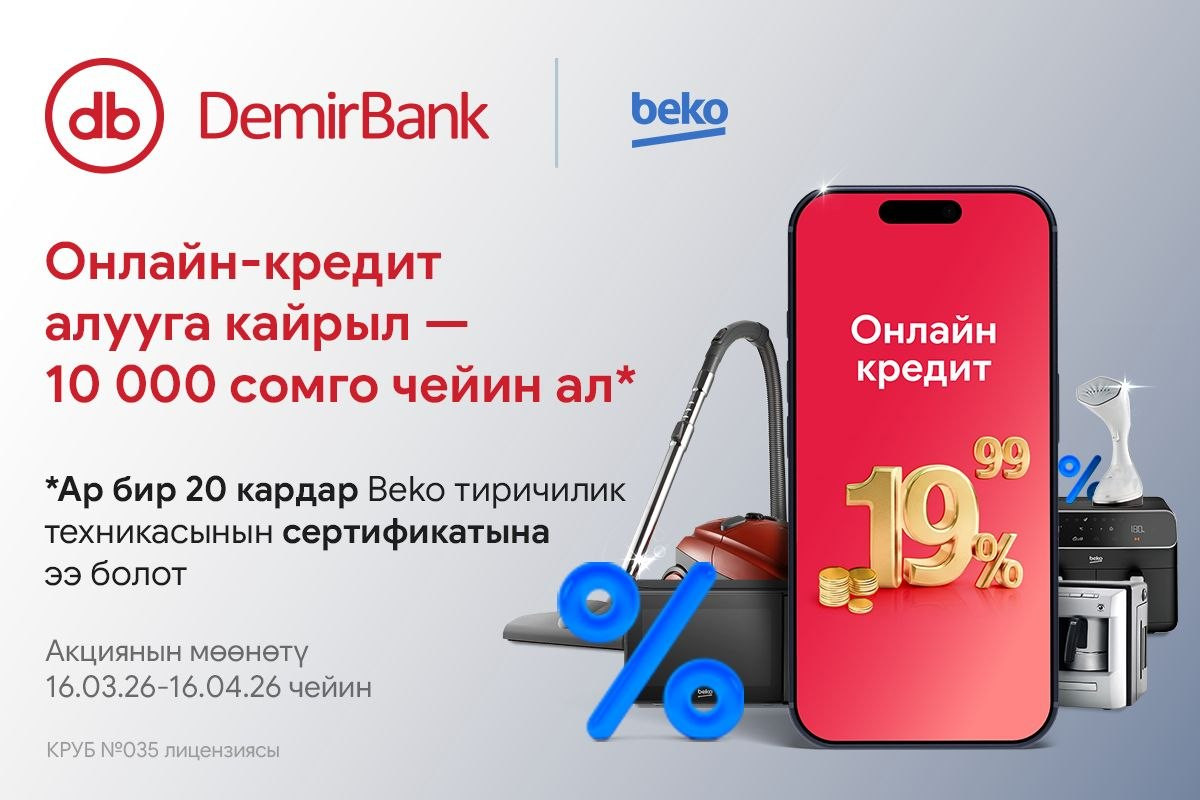 Онлайн-кредит алып, биздин өнөктөшүбүз BEKO компаниясынан тиричилик техникасын сатып алууга 10 000 сомго чейин сертификат алыңыз!