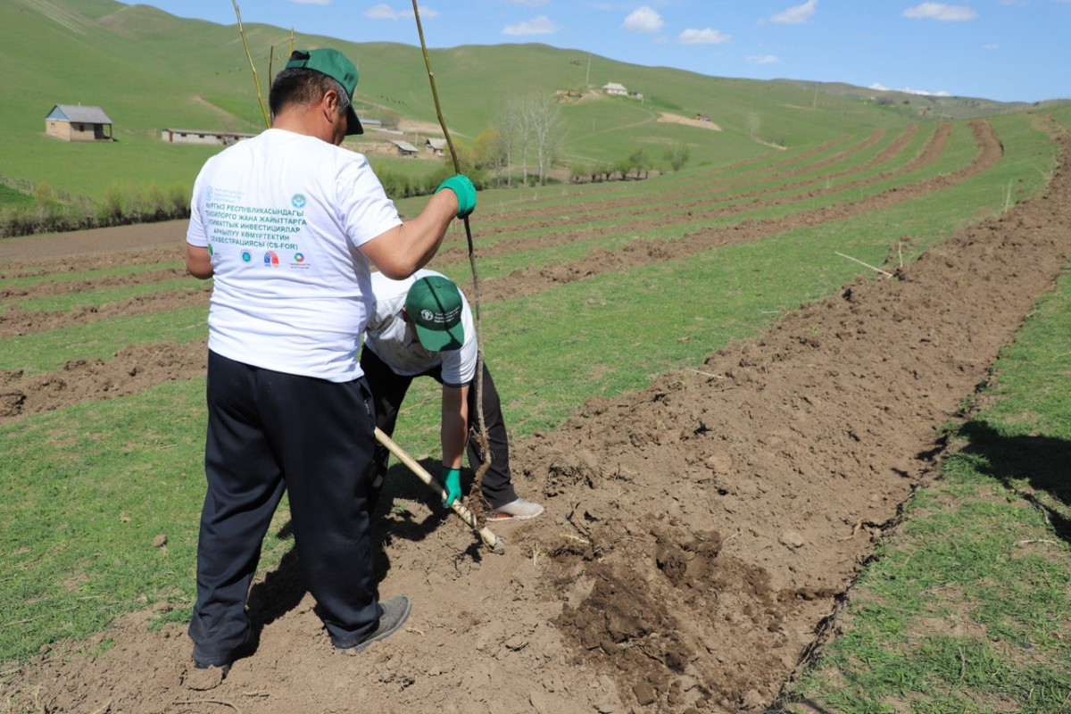ФАОнун Токойлорду жана жайыттарды жакшыртууга багытталган CS FOR долбоору көчөт, тосмолоо каражаттары, керектүү жерлерге тамчылатып сугаруу системасы менен камсыз кылууда.