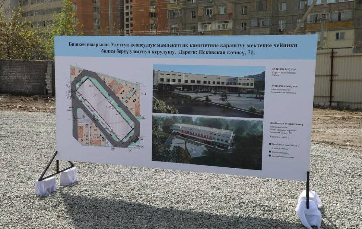 Бүгүн, 3-апрелде Бишкекте Улуттук коопсуздук мамлекеттик комитетине караштуу бала бакчанын имаратынын пайдубалына мезгил кутусун салуу аземи болуп өттү.