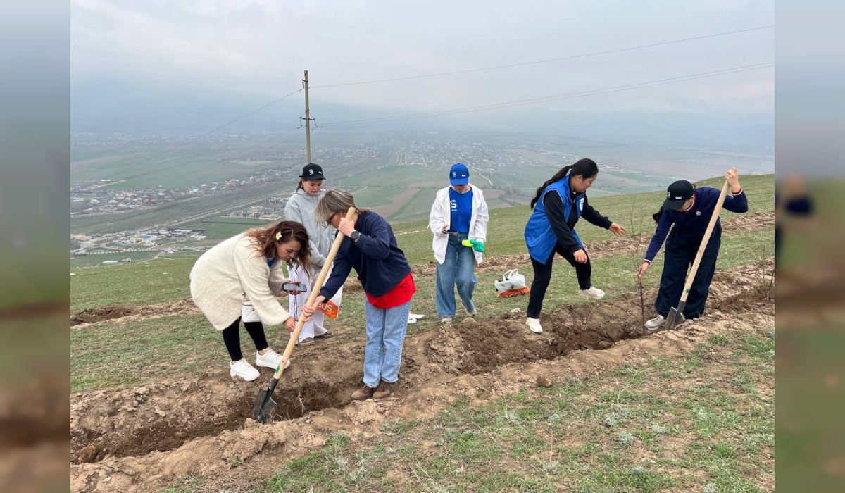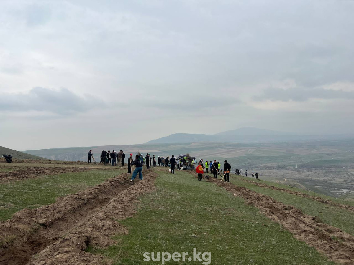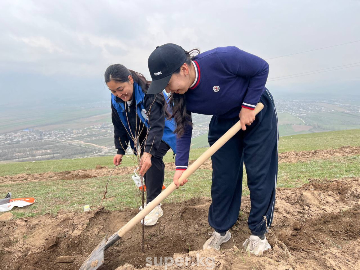 Бүгүн, 4-апрелде Бишкектин чет жагында жайгашкан Байтик айылындагы тоо бетине миңдеген бак-дарактардын көчөттөрү отургузулду.
